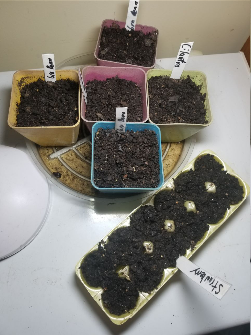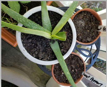 Next up we have an Aloe Vera plant that was a cutting not long ago that we are trying to keep nice and moist until it forms a nice root base, then it will only be watered once a month during summer months. We did not grow this from seed, but the original came from Publix Grocery Store that we got the clipping from. The two small containers both have sweet pepper seeds planted that I will keep you guys updated on as well in the future.