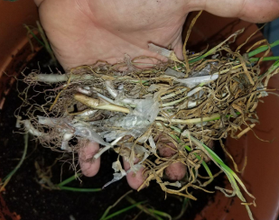 In the photo above the containers in the bottom part of the photo has 2 Jersey Blueberry cuttling's that have a small root-base that was transplanted in the past 2 days as well. Here is a better picture of 1 of the Jersey's.