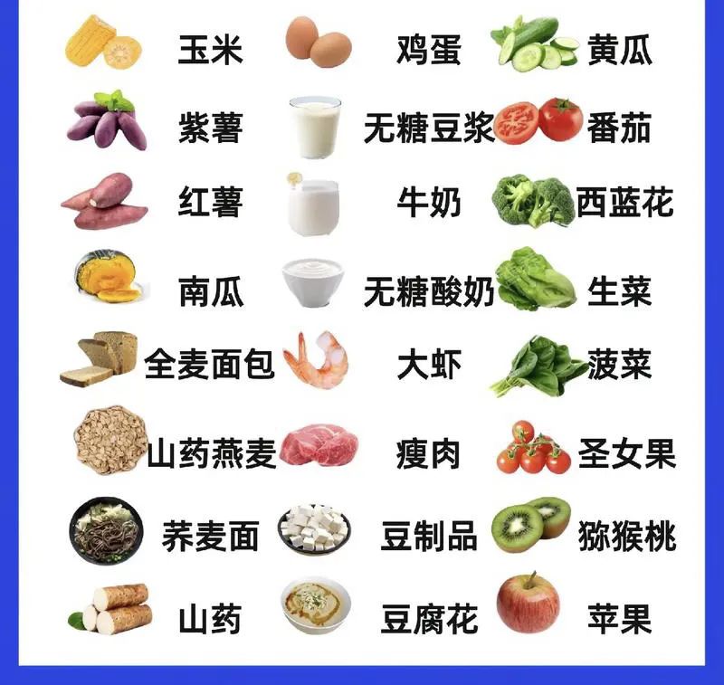 我们可以吃一些粗粮、水果蔬菜、高蛋白低脂这类食物,这样还有利于减脂,也有丰富的营养成分,还不用忍饥挨饿,一举多得。