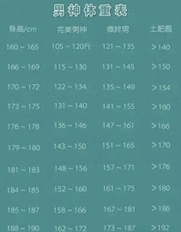 150-180cm男女标准体重对照表:别再焦虑,看看你是否真的超重?