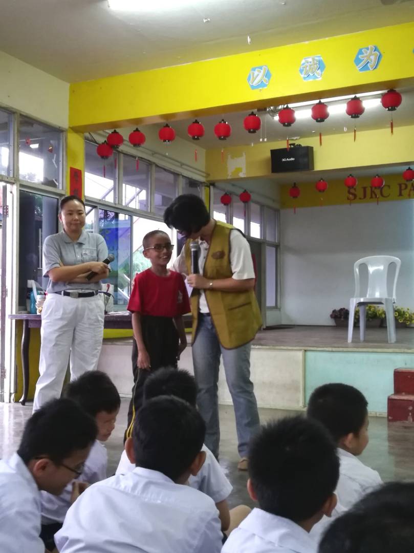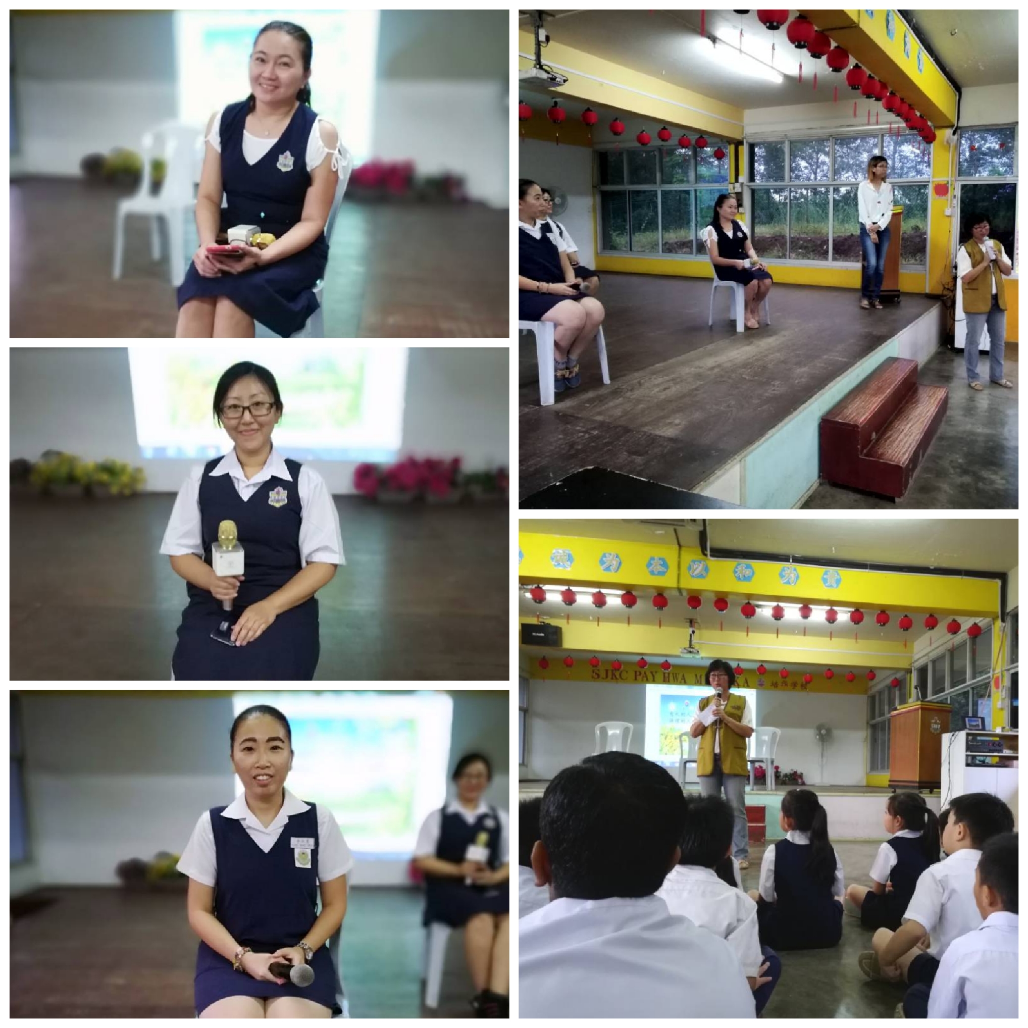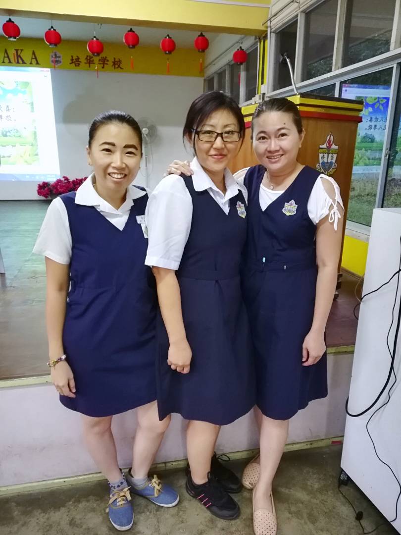 今天,我们是扮演小学生的角色。一进学校就给孩子们惊喜了,为何学校多了几位新学生,一些父母也对我们产生好奇心! 孩子们知道我们这群大爱妈妈是来给他们演话剧,真是兴奋不已。他们迫不及待就到礼堂坐好等待我们。穿上小学校服的我们,仿佛回到童年了,好怀念喔!!