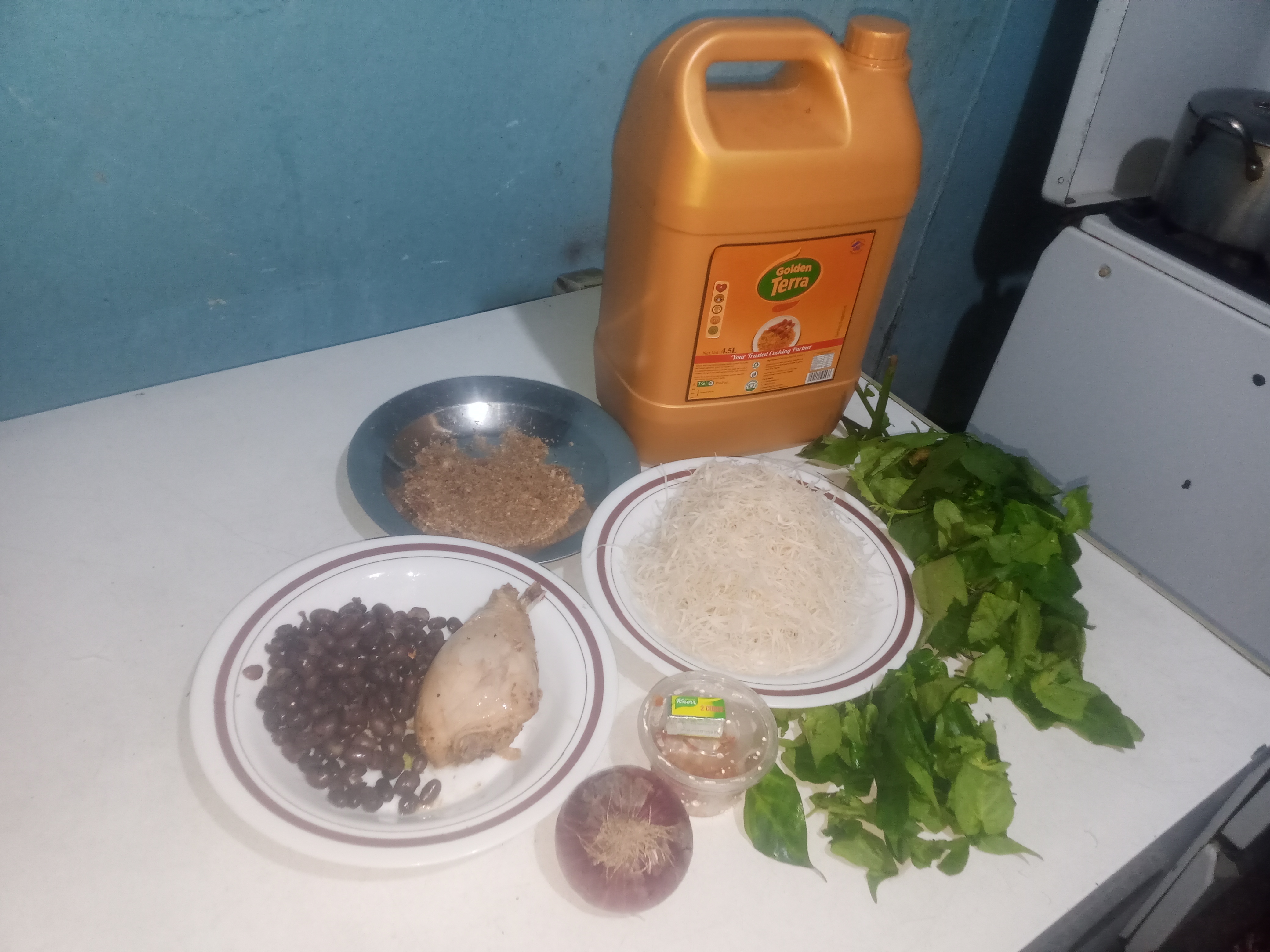 I first cooked my African yam bean with seasonals like Salt, Maggi, pepper and onions; I kept it aside.