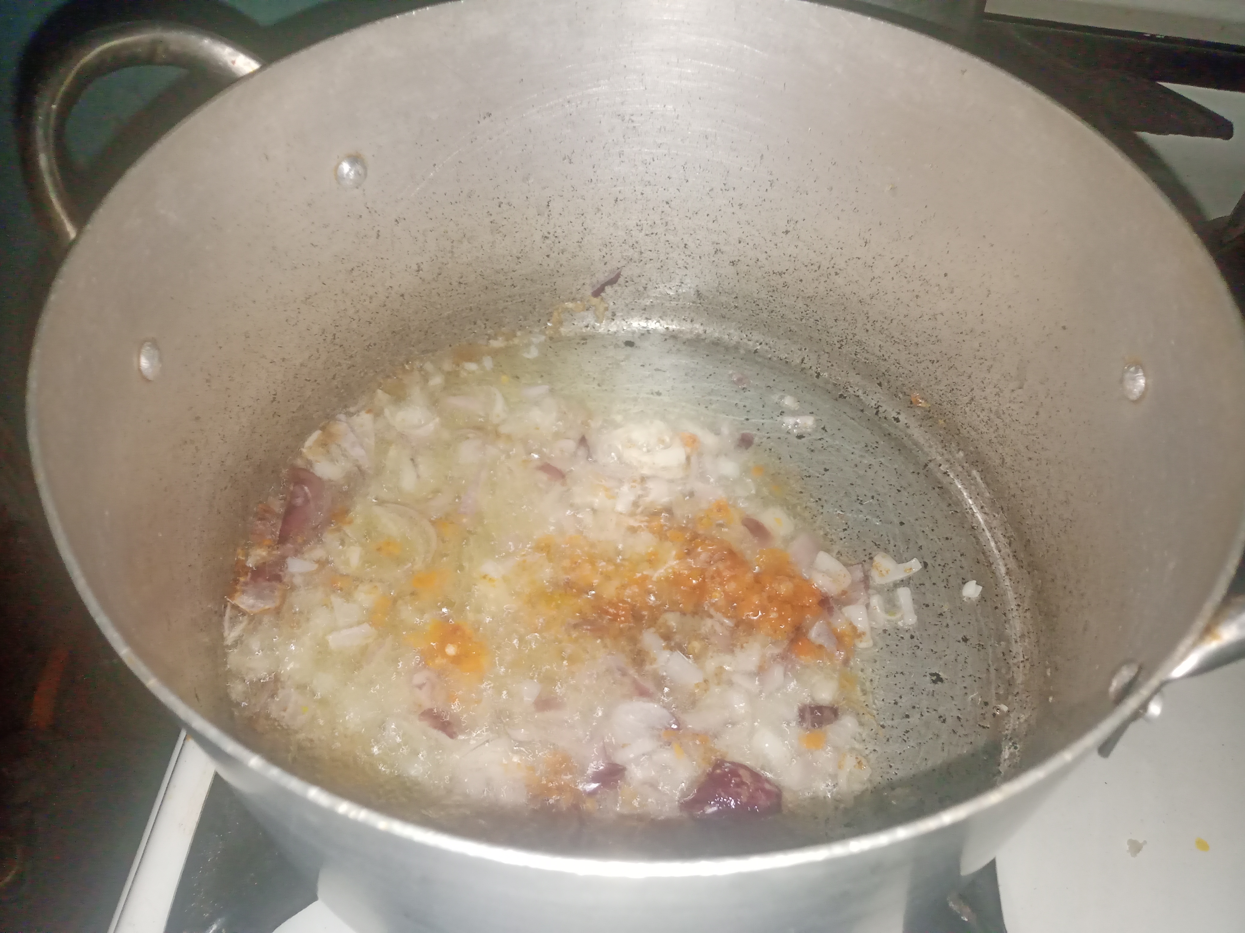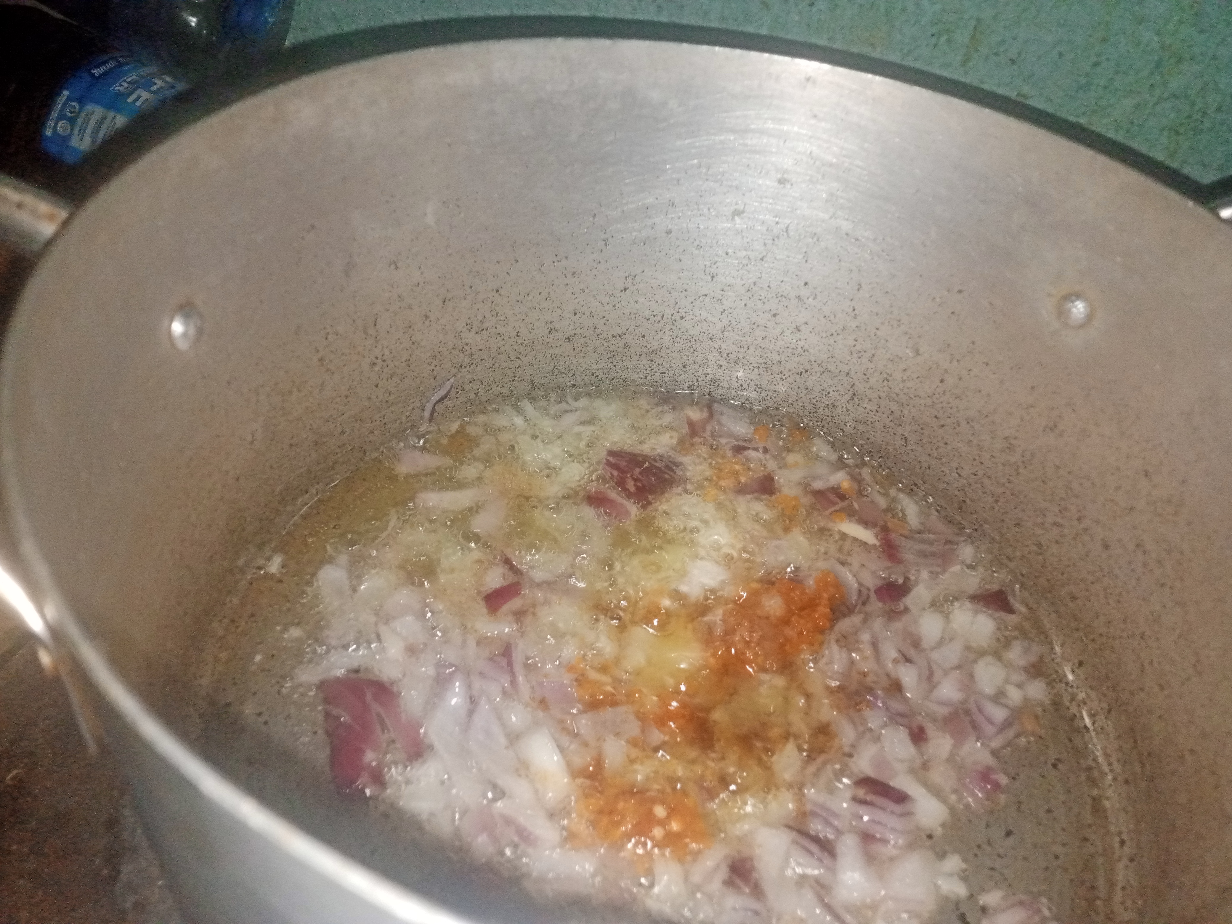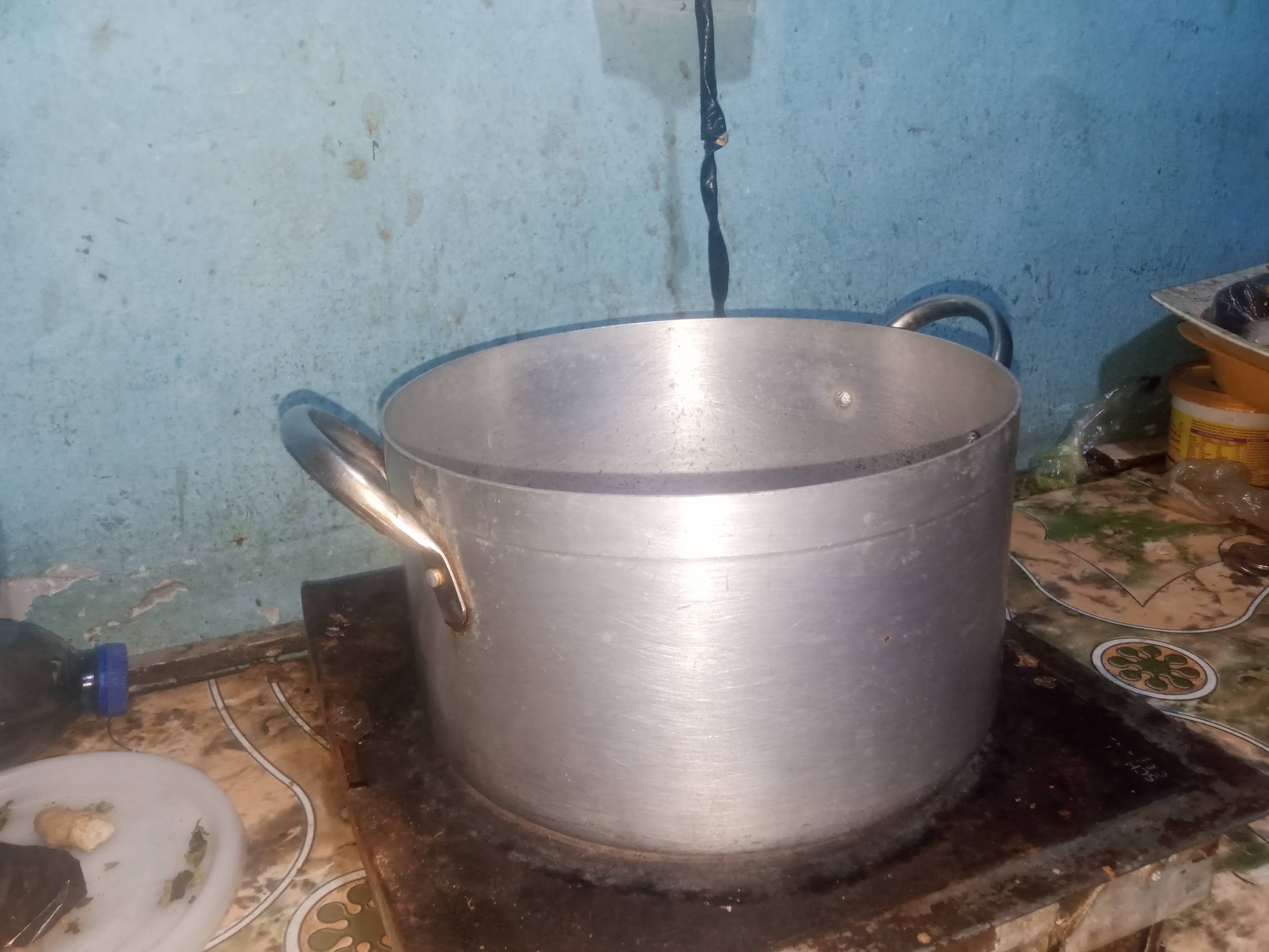 I started cooking my tapioca by drying my pot on a cooking gas, I poured the soyabean oil.