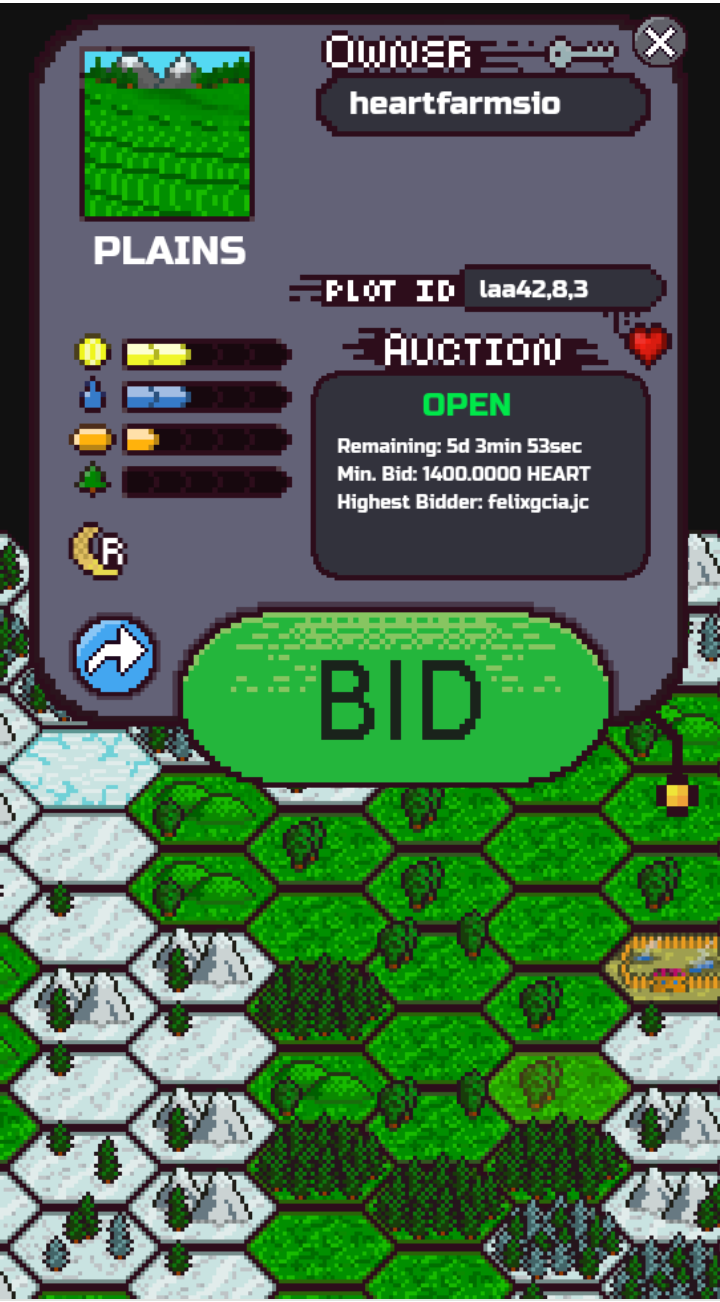 Bidding for a heart land is easy, all you need is a telos account and enough heart token inside it then go to Heart farm website where you'll bid for a land and that's what I did