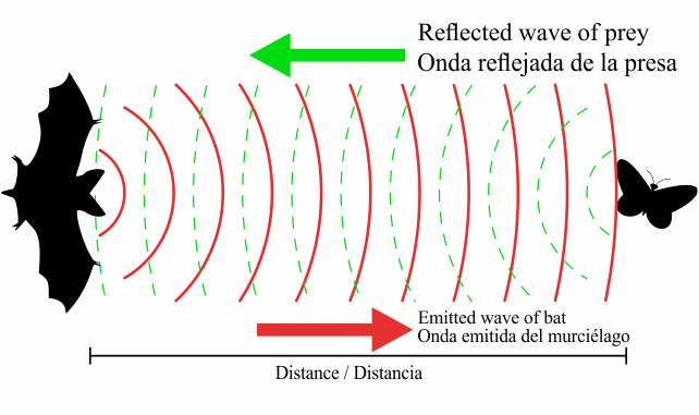 A bat attacking prey, in order to determine where it is in space, produces sound waves that strike the prey and are reflected back to the bat. A bat can calculate the position of the prey based on the time that elapses between the moment the sound wave is produced and the moment it is returned to the bat, for that calculation it must take into account the speed of sound to assess the distance.