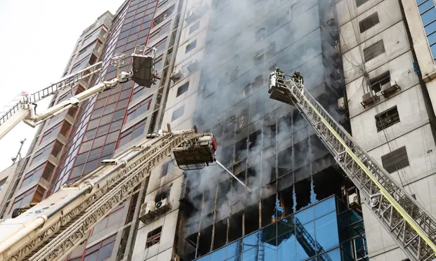 मुझे कर्मचारियों ने निर्माण के पहलू पर एक टेलीविजन केबल नीचे गिरा दिया। अन्य लोगों ने आपातकालीन वाहक हेलीकॉप्टरों के माध्यम से घटाई गई रस्सियों को पकड़ लिया, जिससे उन्हें विस्फोट से बाहर निकाला गया। निर्माण के आसपास सड़कों पर सौ से अधिक एम्बुलेंस खड़ी की गई हैं, जिसके डर से मरने वालों की संख्या में तेजी से बढ़ोतरी होनी चाहिए। उनके मुंह पर कपड़ा बांधने वाला वीडियो। फुटेज में एक लड़की की आवाज में कहा गया, "कृपया जितनी जल्दी हो सके एक सीढ़ी भेजें या हम सभी इस धुएं से चोक हो सकते हैं।" आग टी है