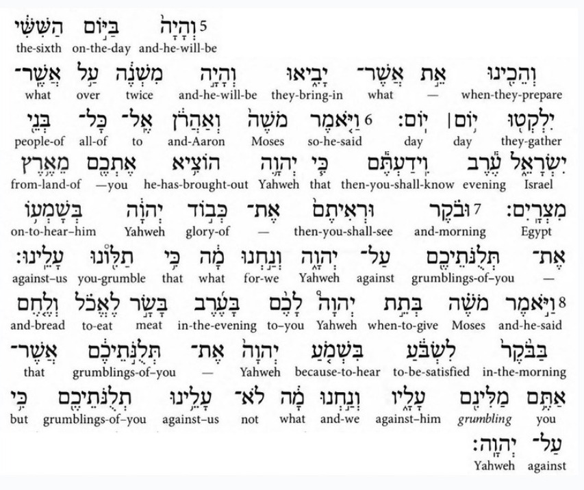 The language of ivrit ( עברית ) Exodus 16, Post #2