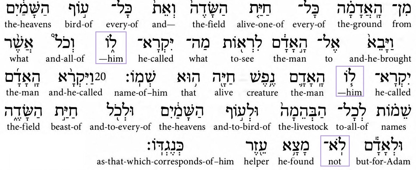 We are reading Genesis 2:18-20