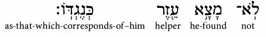 Afterwards, it says, "but for adam, not matzah a helper" which corresponds to him. The interesting thing is the first usage of the word "matzah" that can mean "he found" or "he was found."
