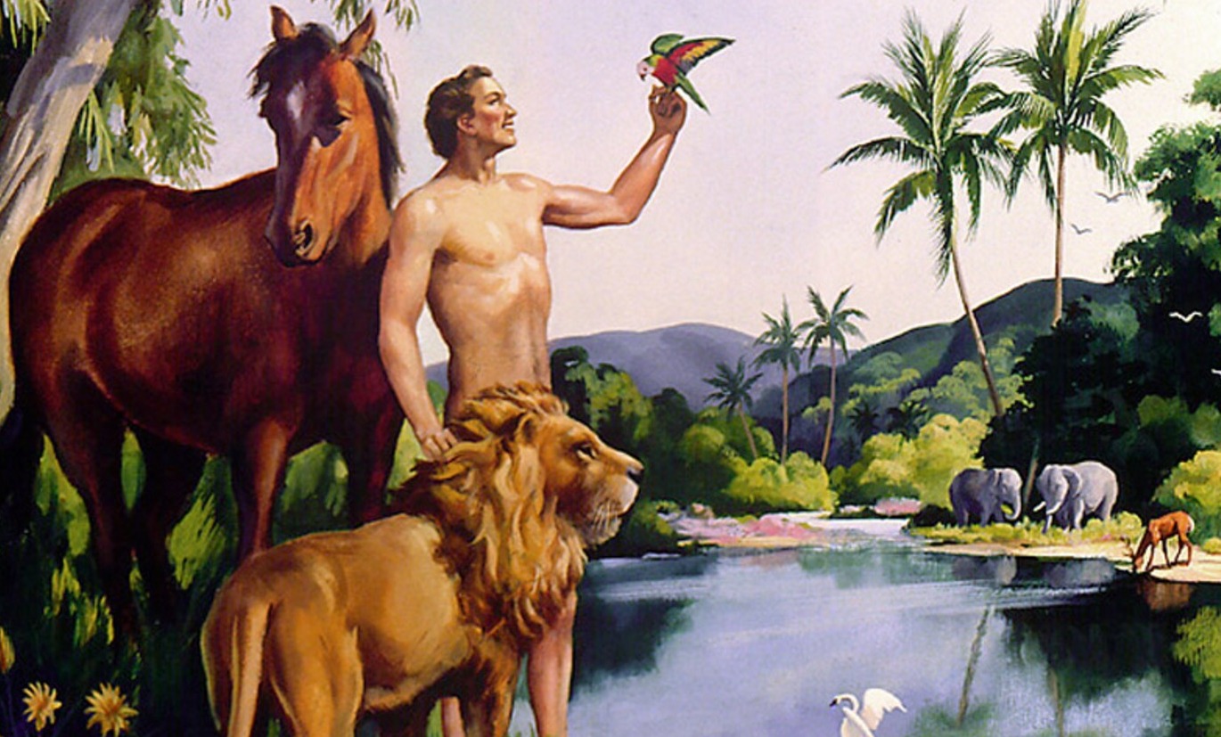 So here is this naked man who was just created, and God's first thought was, "it is not good for the man to be alone..." What follows is the stated intention to make a helper for him. God then makes each animal and brings it to the man. Time seems to be no barrier to this experiment. The man names each animal as it is created (one view), and those are what they are called from then on.