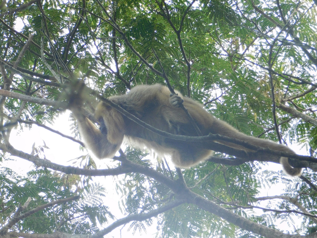 This beautiful ¨mona¨ is a ¨female¨ of the ¨carayᨠrace they are ¨howler¨ monkeys, as we can see in the video, her howling is a way of communication with others of the "species" of her. The "yellow of her" color of hers indicates that she is a "female", unlike the "males" who are "black"; These animals are "native" to this area of the "world". If you want to know more about this beautiful species of monkeys, you can enter the source of information:
