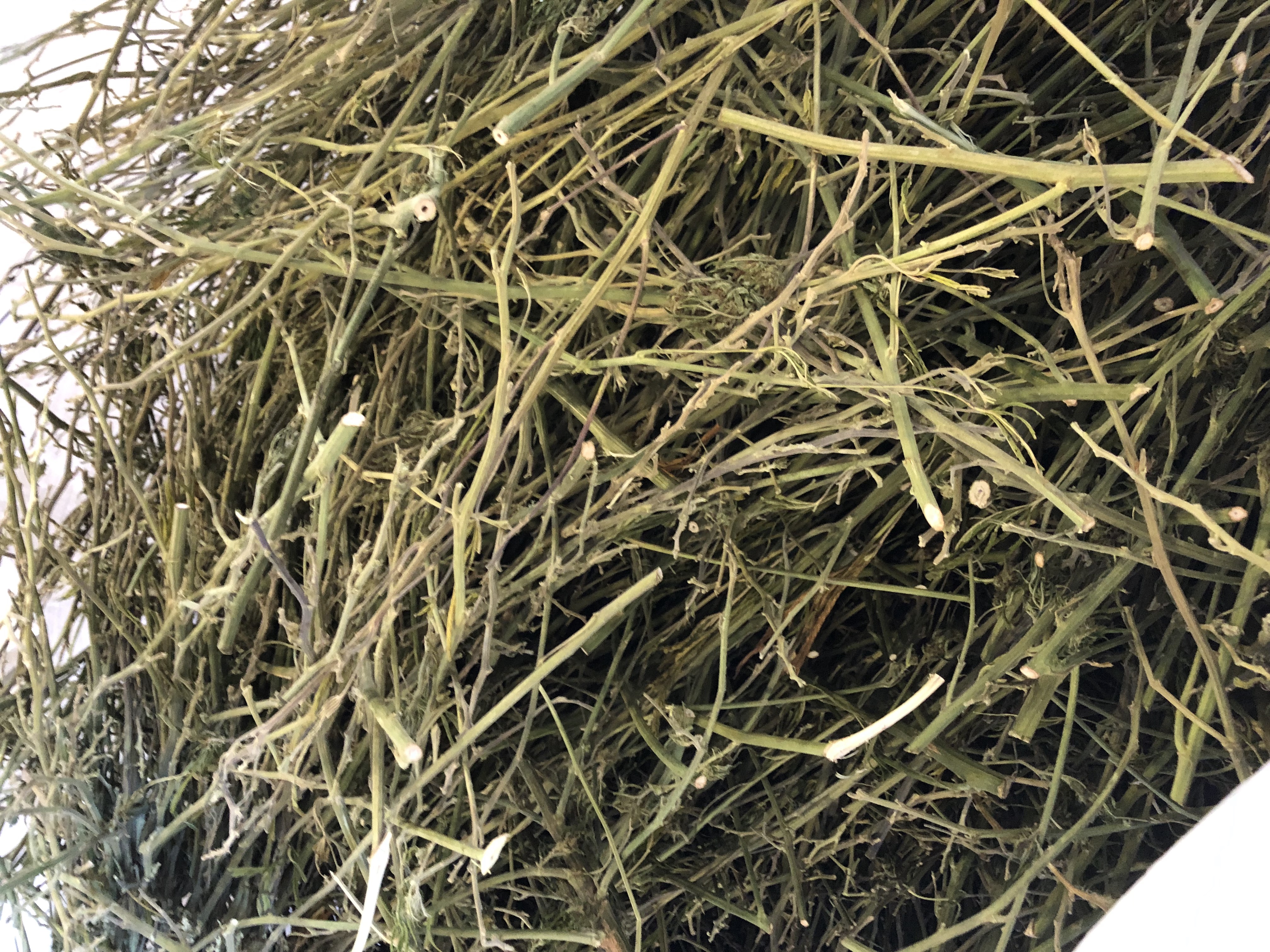 Then we buck the flower from the major stems. This allows us to separate the hemp stalks away from the hemp buds.