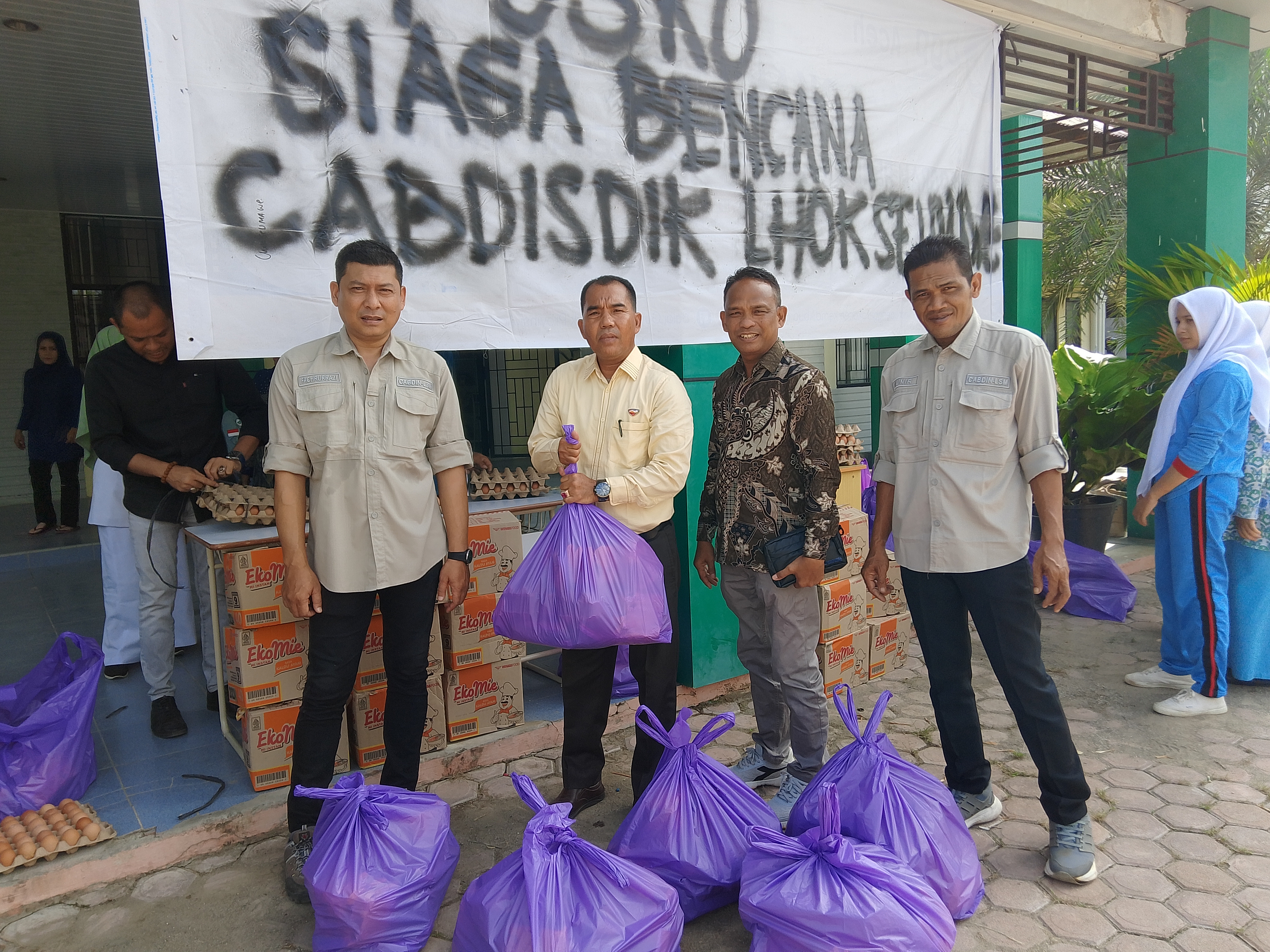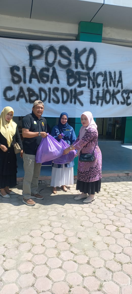 Hari ini kamis tanggal 4 Desember 2025 pihak Cabang Dinas Pendidikan Wilayah Kota Lhokseumawe menyalurkan bantuan berupa sembako yaitu beras, mie instan, telur, dan minyak goreng. Bantuan tersebut di salurkan untuk warga sekolah yg berdampak banjir yang bertepatan di tanggal 26 November 2025, dampak banjir tersebut habis mempora-porandakan bangunan, bendungan, hutan, infrastruktur pembangunan.