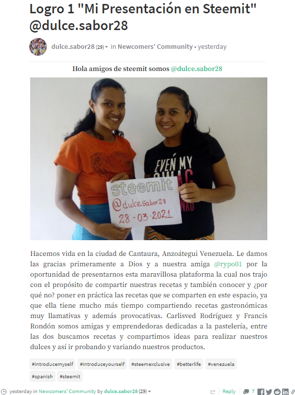 Por favor tómese unos minutos y vea su publicación y quizás aliéntelos con un comentario y un voto positivo. Visita su publicación AQUI.