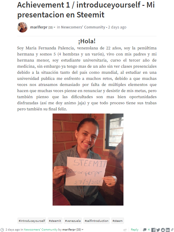 Please take a few moments and view their post and maybe encourage them with a comment and upvote. Visit their post HERE .