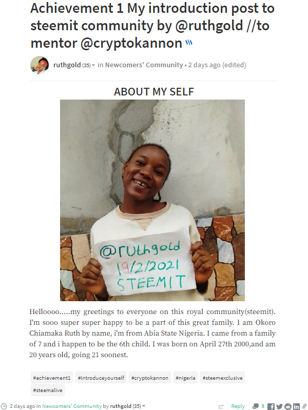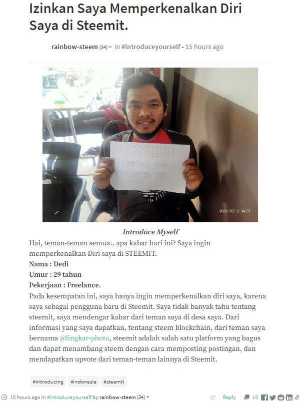 Silakan luangkan waktu sejenak dan lihat kiriman mereka dan mungkin mendorong mereka dengan komentar dan upvote. Kunjungi postingan mereka DI SINI
