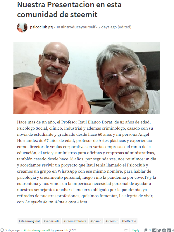 Por favor tómese unos minutos y vea su publicación y quizás aliéntelos con un comentario y un voto positivo. Visita su publicación AQUI.