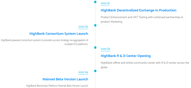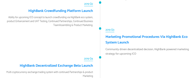 The HighBank platform is primarily intended for the application of decentralized blockchain technology for managing financial management and capital management; directly link demand and supply through an account on a peer-to-peer network basis; and create a reliable system. Subsequently, he intends to build his own decentralized exchange, and then turn into a platform on which to develop and use intelligent