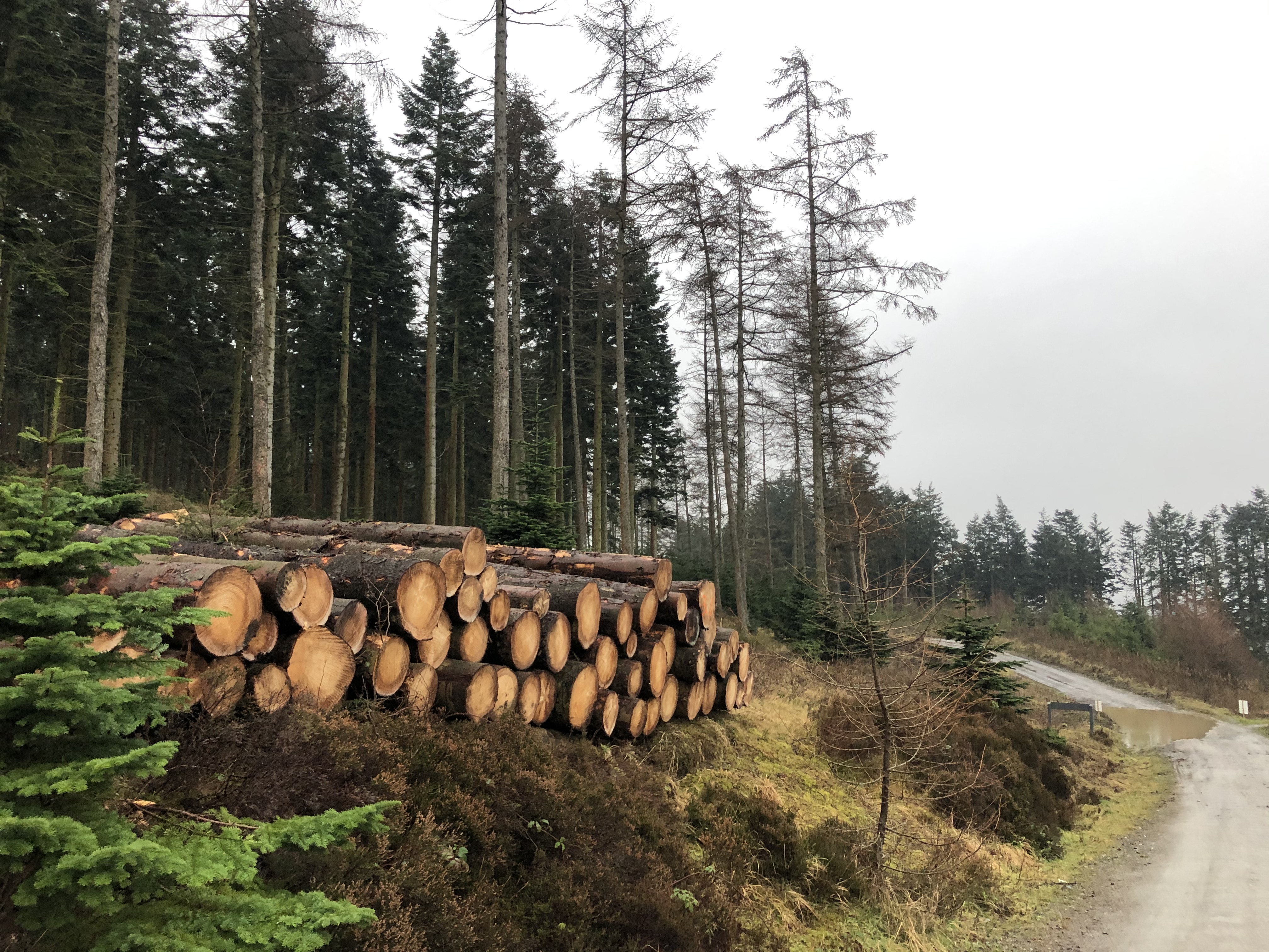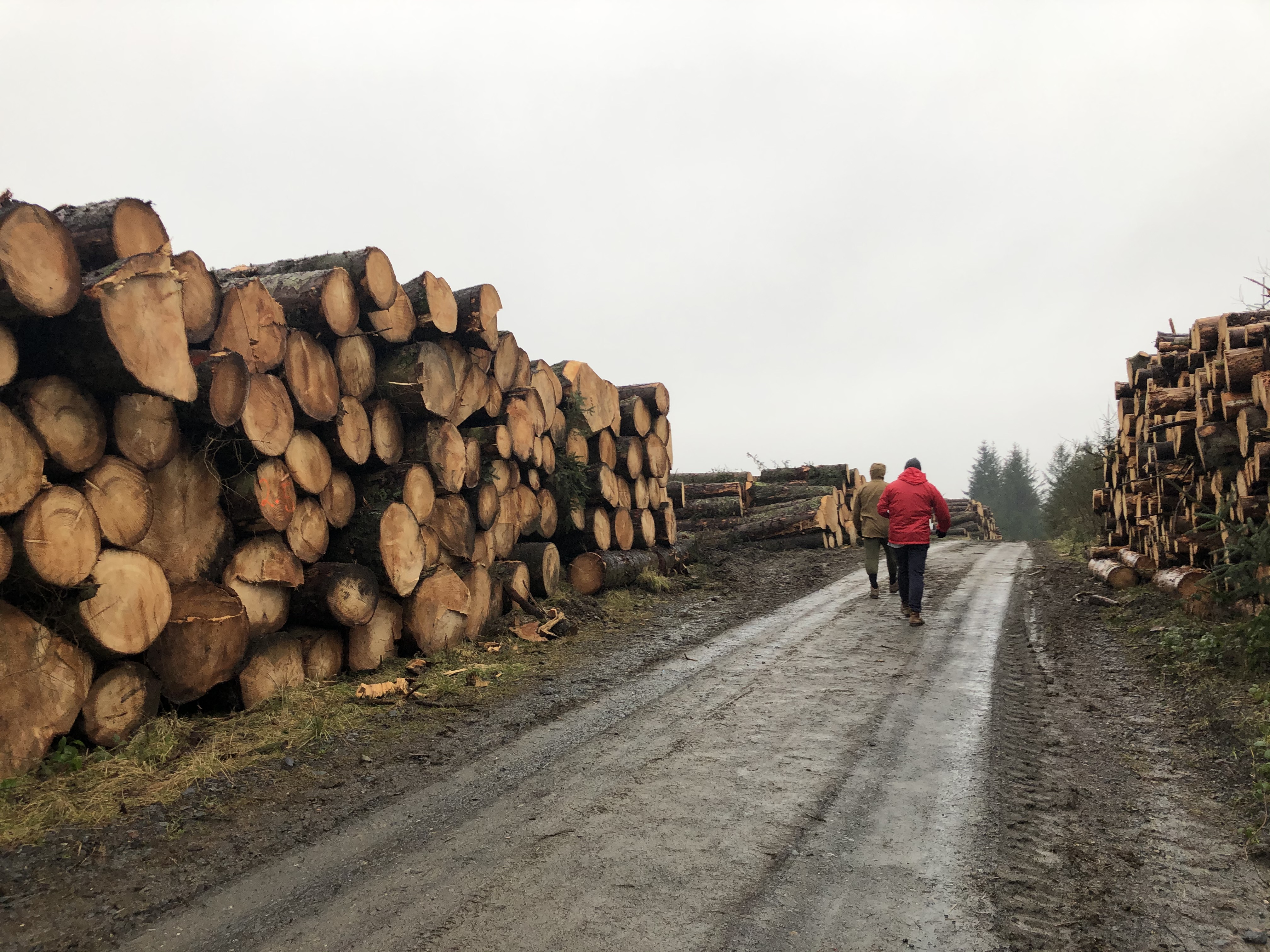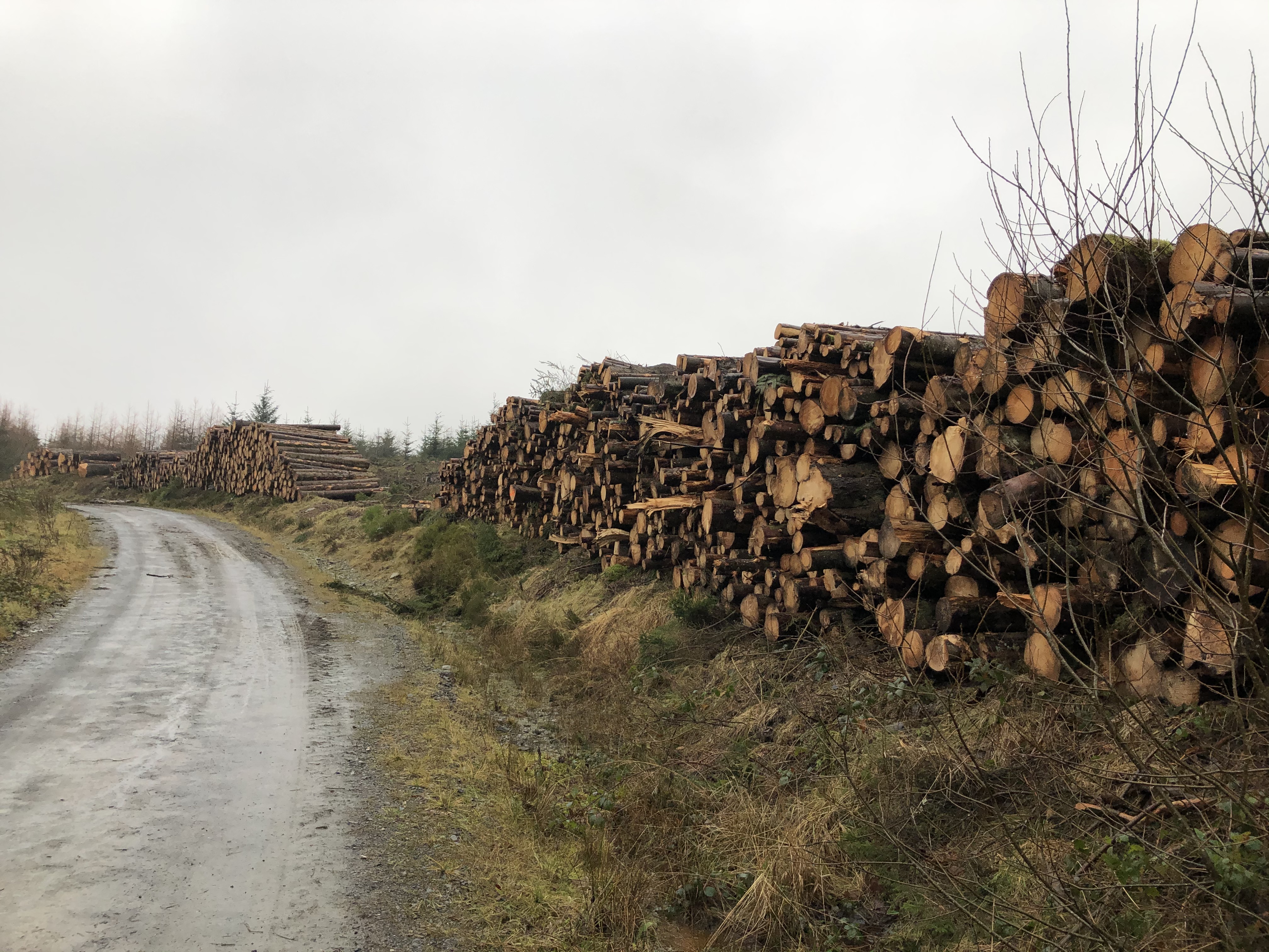 The trail widened as we meandered our way through the huge piles of pine trunks, recently stacked and ready to be taken to the saw mills to begin their new lives as furniture and who knows what else.