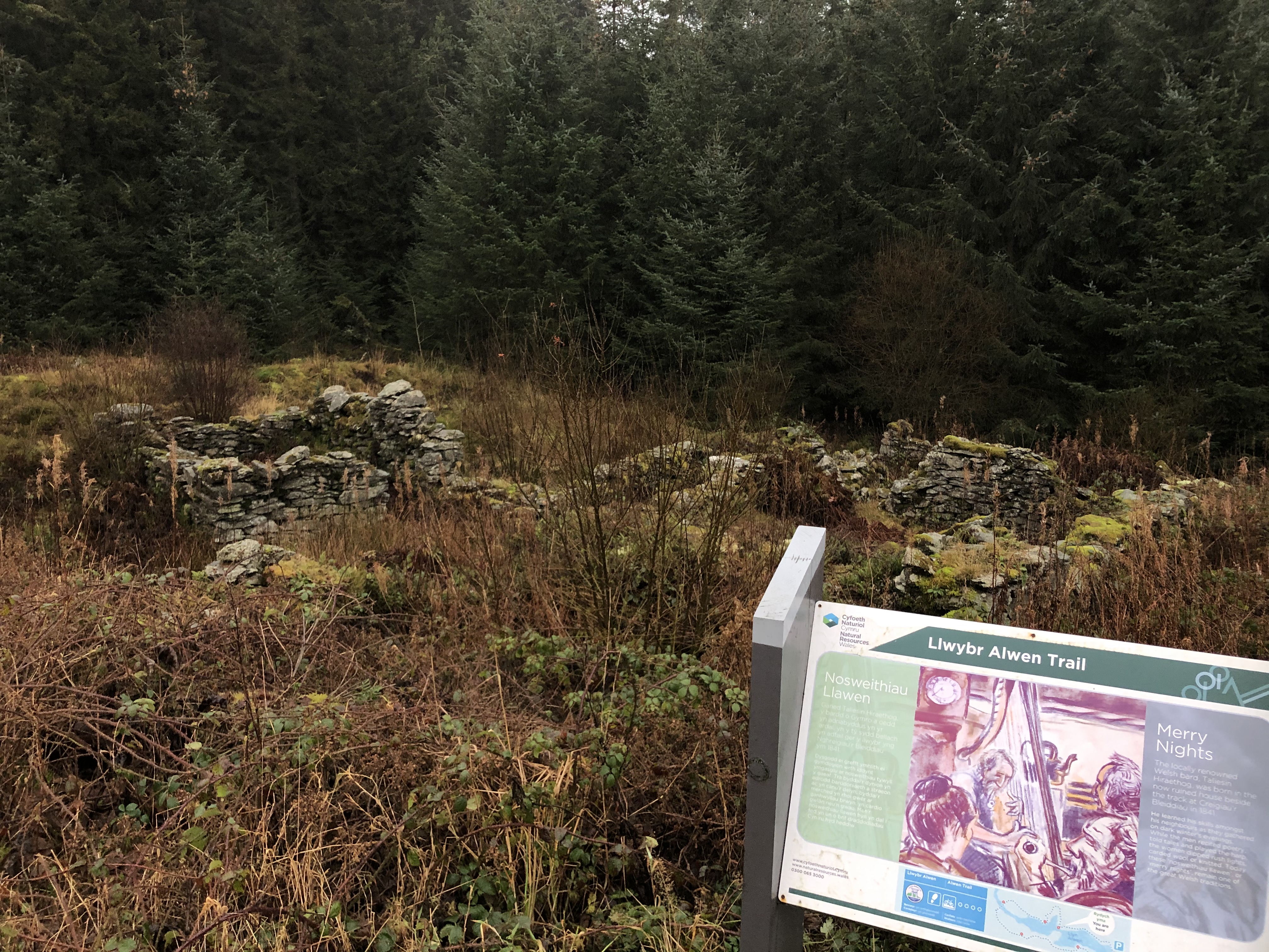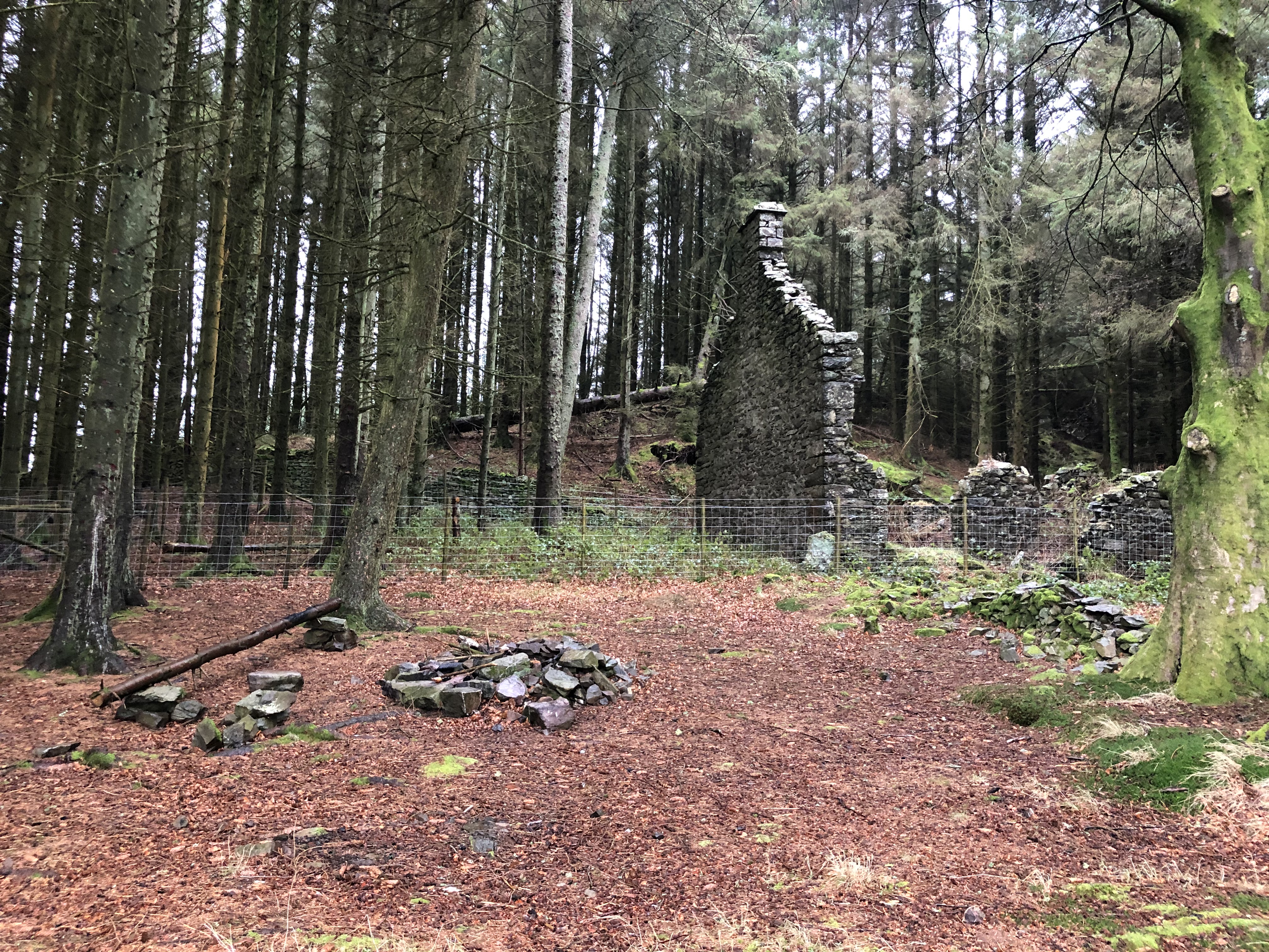 The ruins that can be seen from the trail are all that is left of the house in which Hiraethog grew up.