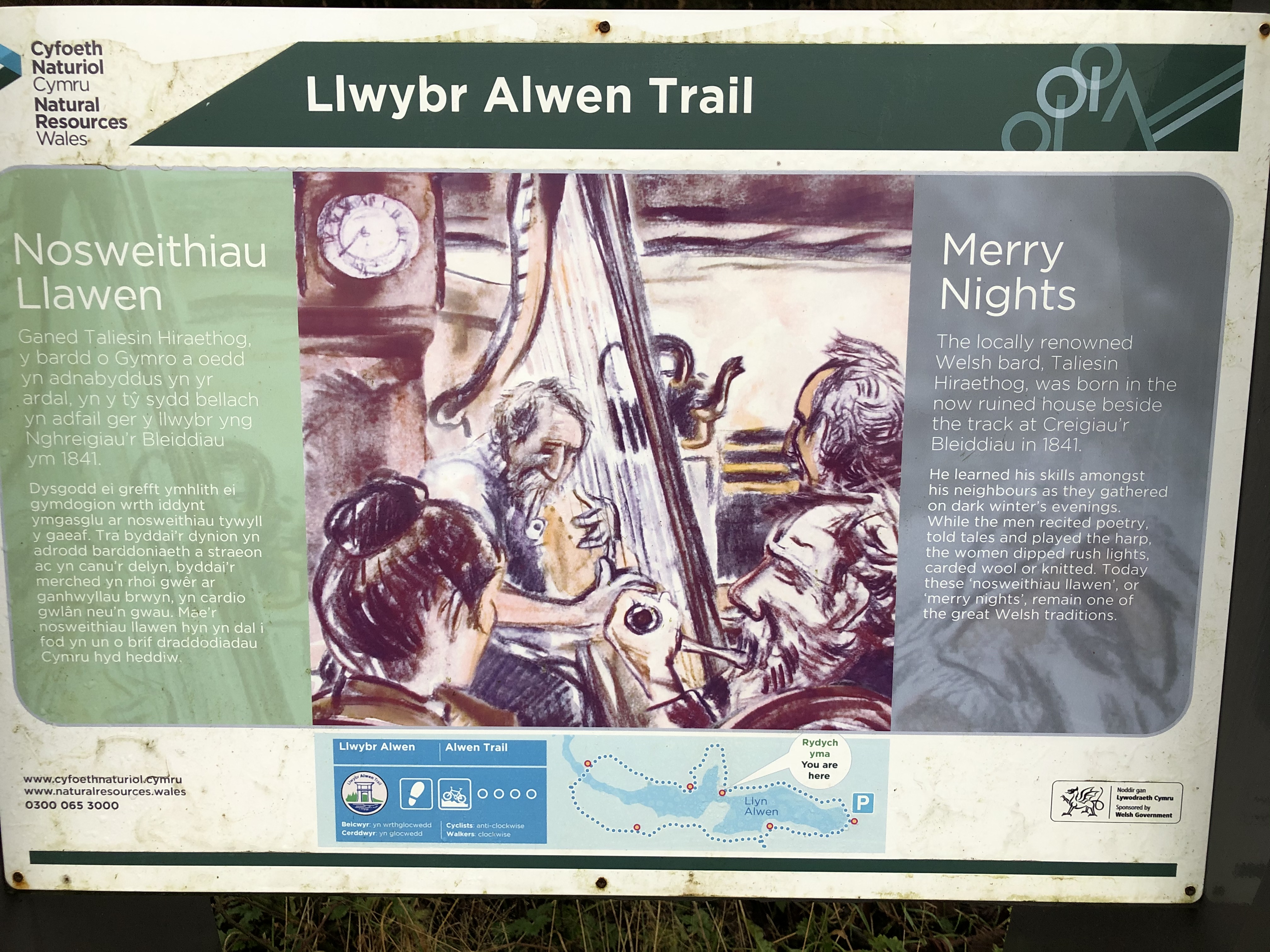The next point of interest was the birthplace of local folk-hero Taliesin Hiraethog. A professional story teller, poet and musician known as a bard, he popularised the Welsh tradition of 'Nosweithiau Llawen' (Merry Nights), where family and neighbours would gather on winter nights in front of the fire, enjoying food and entertainment to the sweet sound of a harp.