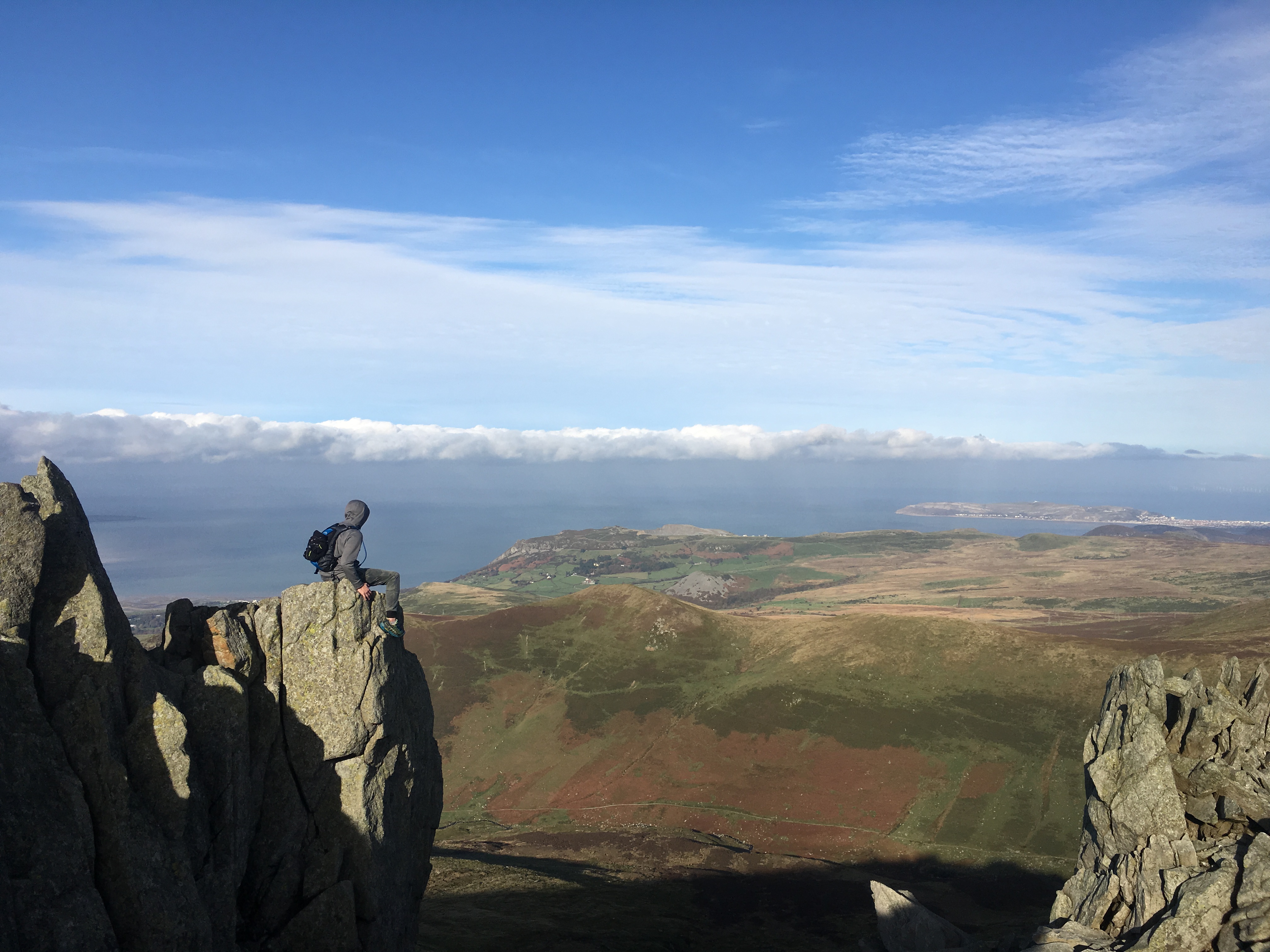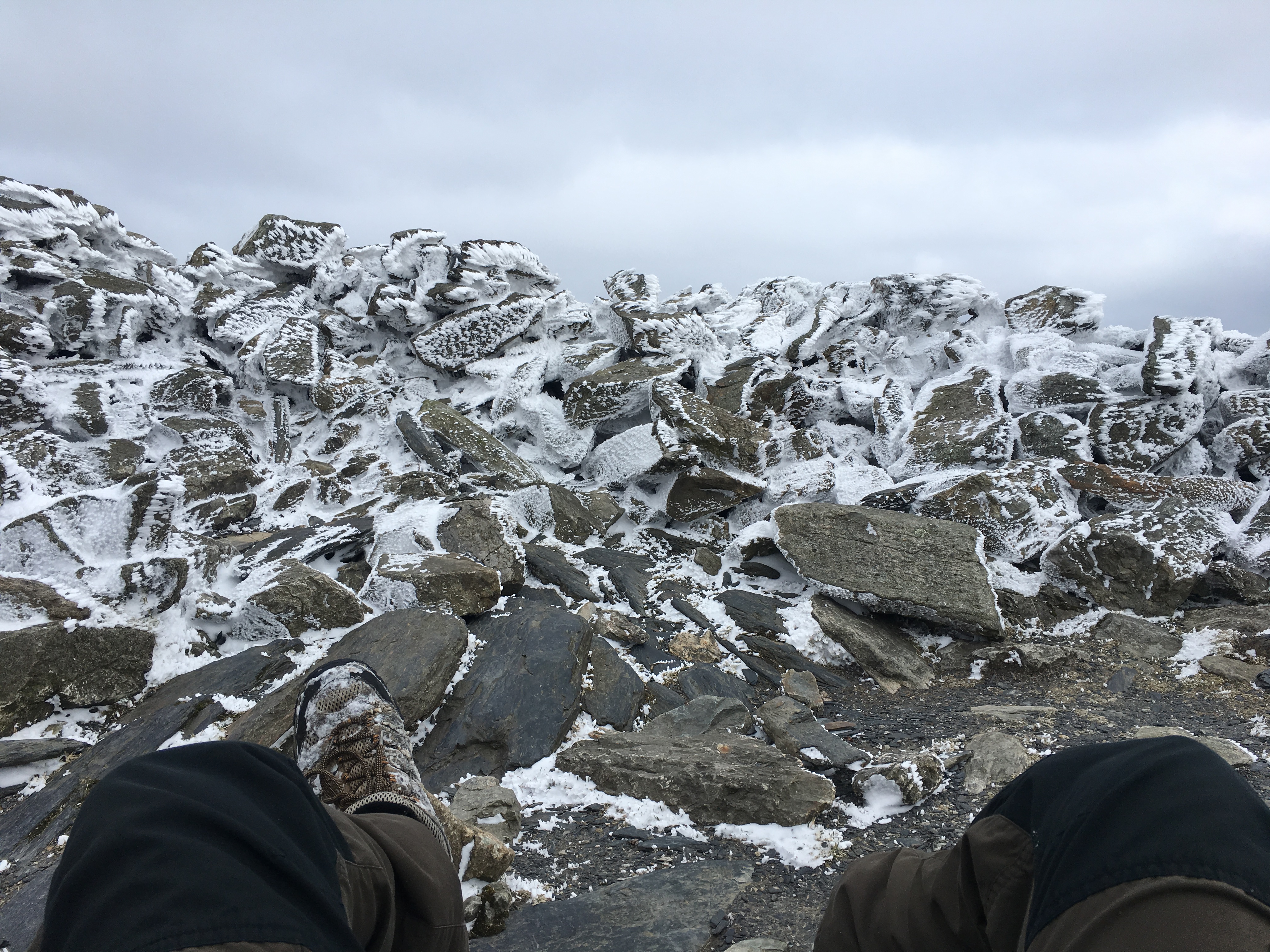 From the top of this trail you can access the peaks of Drum, Foel-Fras and Llwytmor. There is a summit shelter on Drum (pronounced 'Drim') in the form of a bunch of rocks piled up to form a wind break, there is no roof but this is a much needed opportunity to get out of the wind and make a hot drink or get something to eat.