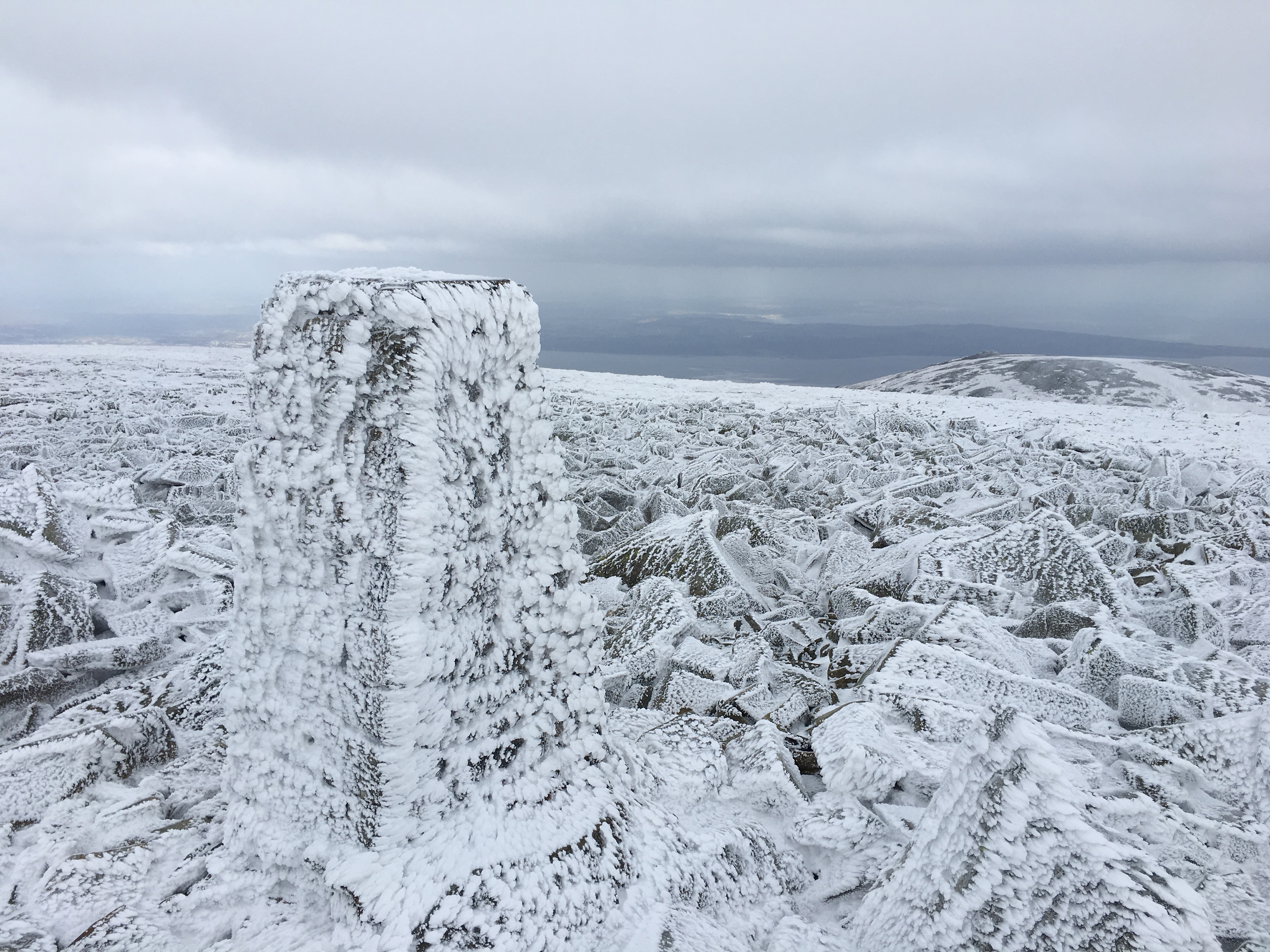 The summit of Foel-Fras, the eleventh highest peak in Wales, is marked with a triangulation pillar. This must be one of the most weather beaten trig. pillars in the whole of the UK and I almost feel a bit sorry for it in the winter!