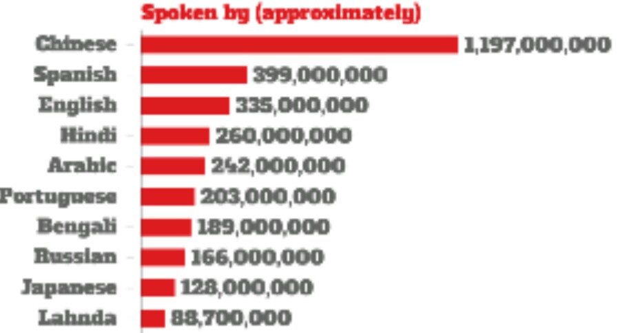 इस आंकड़े के आधार पर हिंदी को चौथी सबसे ज्यादा बोले जानी वाली भाषा का दर्जा दिया जाता हैं।