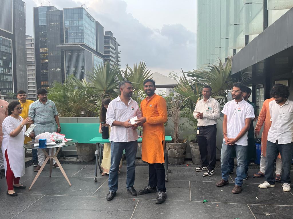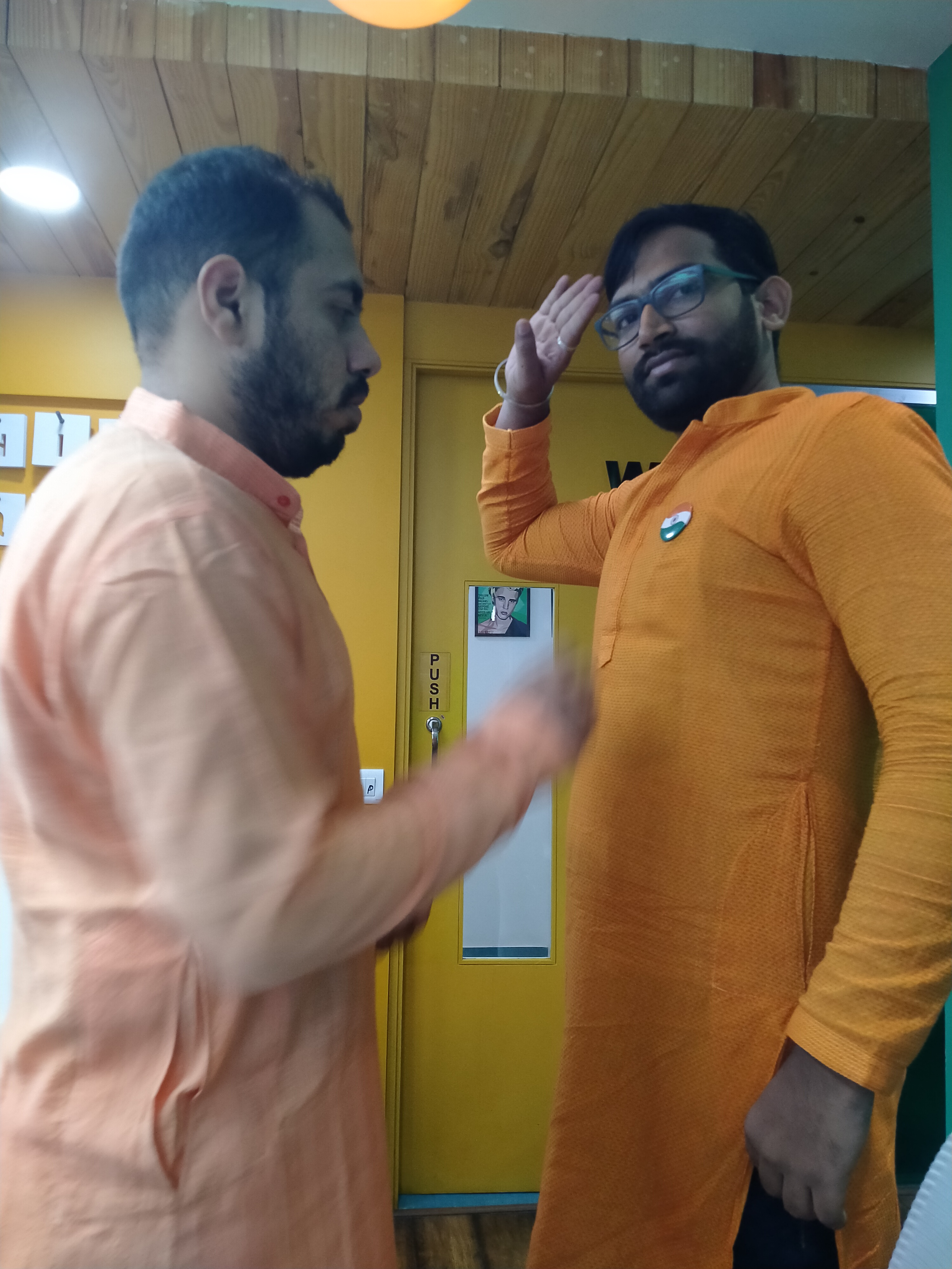 ऑफिस का सजावट का काम तकरीबन आधे घंटे में पूर्ण होने के बाद हम लोग अपने-अपने ऑफिस कार्य में लगे जो की हमेशा होता है थोड़ी देर बाद मैसेज आया कि हम सभी को ऑफिस एरिया में एकत्रित होना है जहां मिलकर स्वतंत्रता दिवस को धूमधाम से मनाया जाएगा।