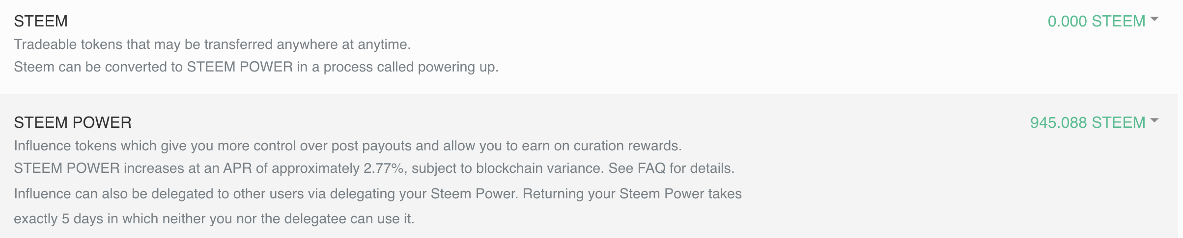 As you can see, my STEEM balance is 0 and the STEEM POWER increased to 945.088 STEEM.