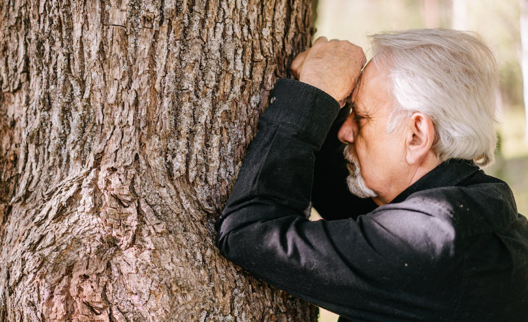 "All is going to be fine." He sighed while he looked at the old oak tree. He put his forehead against the tree and whispered, "Thank you very much for helping me old man"