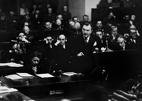 Sin reparar en minucias, el fiscal estadunidense Robert Jackson dijo muy suelto de cuerpo: "Esta ley es aplicada aquí y ahora a los agresores alemanes, pero incluye y tiene que condenar también... la agresión que cometa cualquier otra nación, sin excluir a las que aquí se sientan a juzgar".