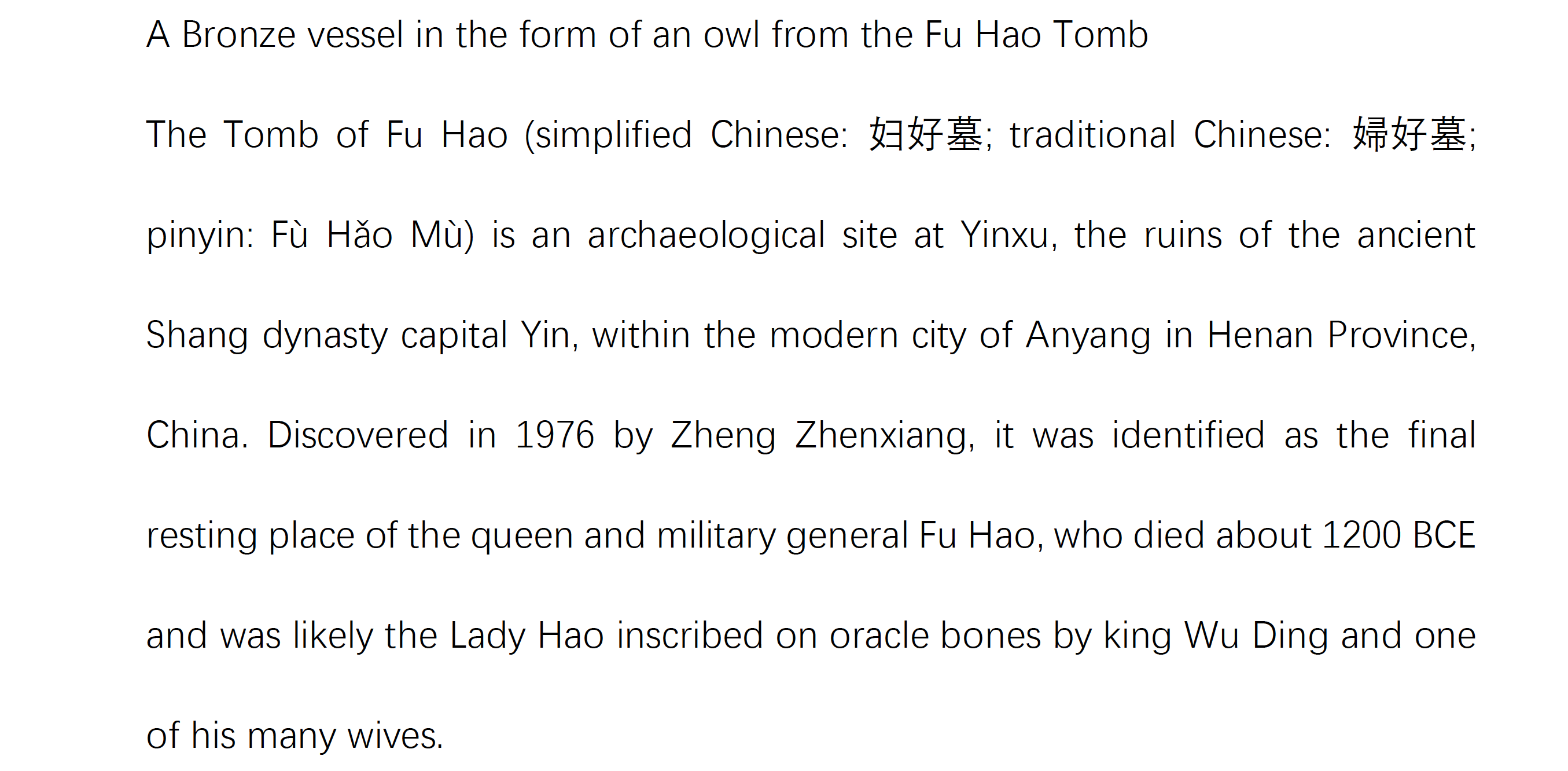 掘次数最多、持续时间最长、揭露面积最大的遗址,被评为 “20 世纪中国百大考古发现”之首。 1976 年在殷墟发现的妇好墓是目前已发掘的唯一一座保存完整的商代王室墓葬,出土了多达 1928件随葬器物,在中国考古史和殷商史领域都具有里程碑式的意义。