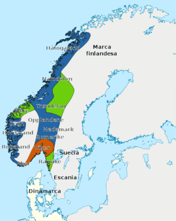 Olaf the Swedes received four district (area in blue on the map), he however gave these to jarl Svein , his son in law. Forkhead gained possession of the Viken district (area in brown; the home of King Olaf Tryggvason) and the rest of Norway was ruled by Eirik as Forkhead vassal(area in green). The jarl brothers proved strong, competent rulers and their reign was prosperous.