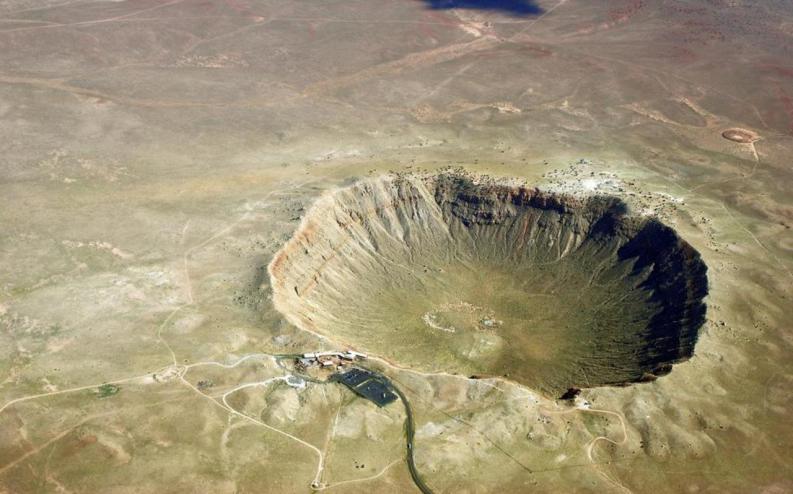 Este es el cráter barringer que esta situado en Arizona (E.E.U.U), tiene un diametro de 1200m y 170m de profundidad.