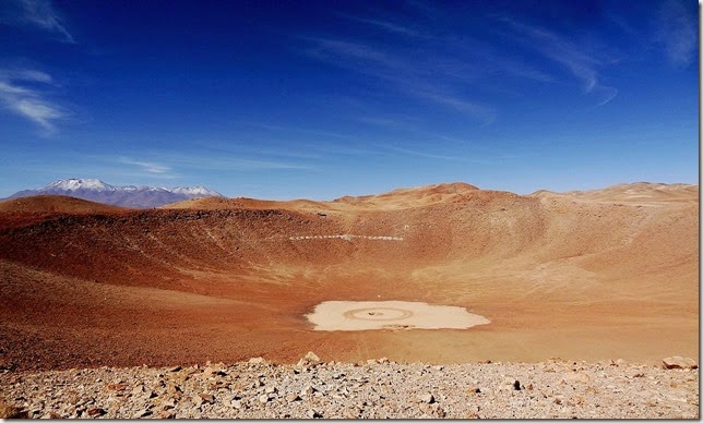 Este crater esta situado en el norte de chile, segun investigadores esto paso hace mas de un millón de años atrás donde una gran bola de piedra imparto nuestras tierra.