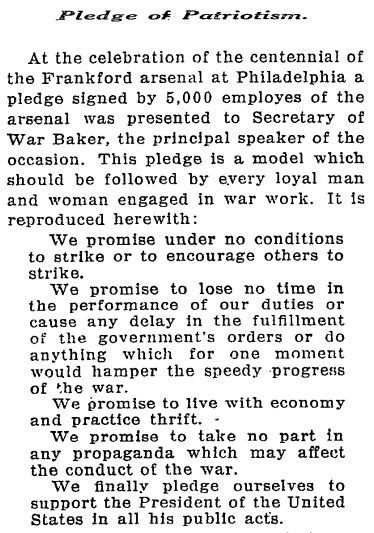 - The Frankford Arsenal had its centennial, and workers celebrated by... pledging their anti-union loyalties to the arsenal?