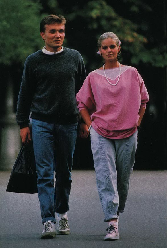 The fashion of the young is universal. A couple is walking along the embankment in Odessa.