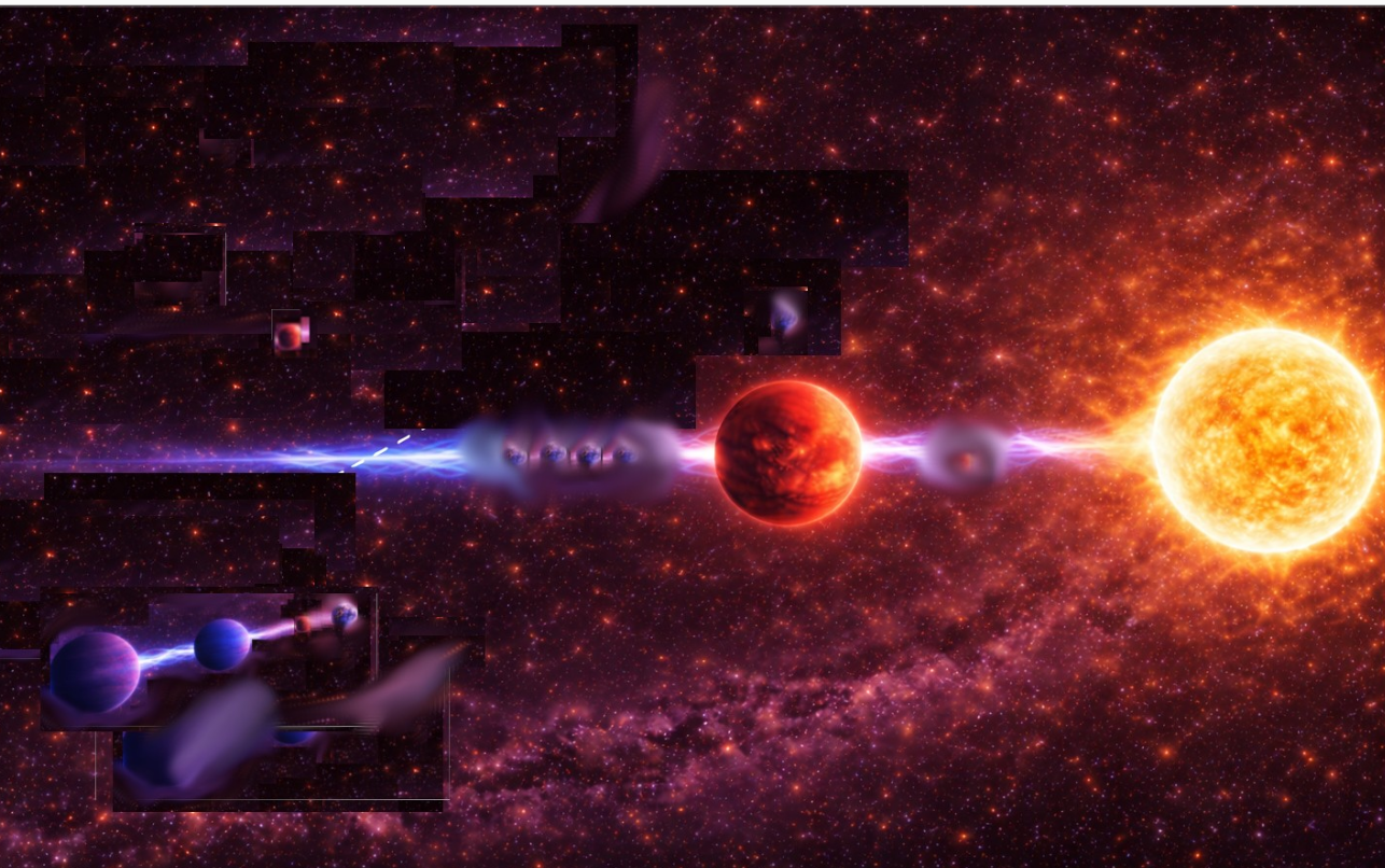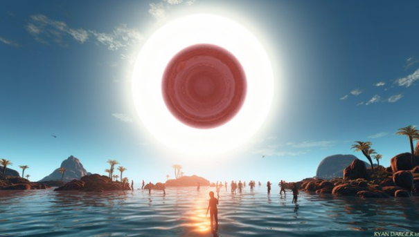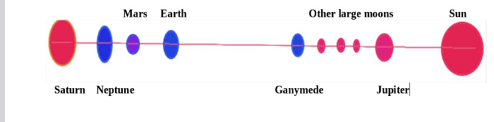 In the earliest times, Ganymede, Jupiter's largest moon just slightly smaller than Mars, had been the one place in oiur system with all of the necessary ingredients of a credible human home world; that means also that the earliest humans on Earth had transferred from Ganymede. That logically puts the sun on one end of the thing since living creatures could not transfer THROUGH the sun. The human requirement for warmth and brighjtness puts Jupiter and its moon system next to the sun which, in fact, is the normal situation for gas giant planets and dwarf stars ("Hot Jupiters") in our galaxy that are aligned with main-sequence stars like our sun.