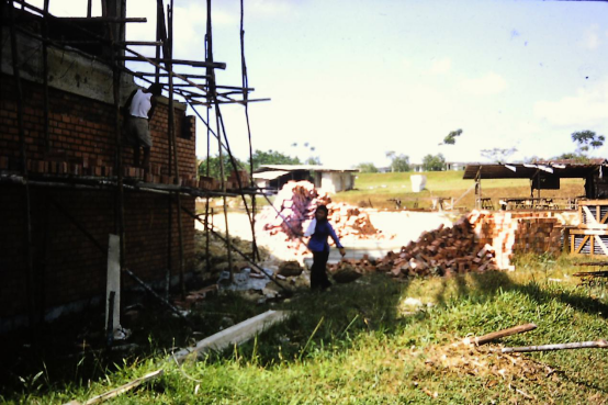 We also watched them erecting some new barrack blocks, there were two women carrying bricks up to three bricklayers, the women were trotting to keep the layers supplied, and the layers were trying to get the women to run faster.