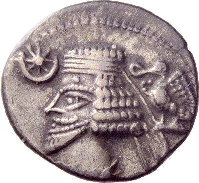 The symbol next emerges in the Parthian Empire, beginning with the coins of Phraates V (r. 2 BC – 4 AD). Here the star represented either the Zoroastrian divinity Mithra or the divinity Tishtrya. The case for Mithra is supported by the pseudo-Zoroastrian Pontus use of the star. The crescent likely corresponds with the goddess Anahita. The star and crescent became an emblem of the Parthian kings and was adopted by the rulers of the Sassanian Empire as a sign of legitimacy.