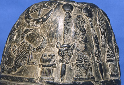 Stars adjoining crescents are also a common design on Mesopotamian boundary stones in the late Bronze Age. The boundary stone of King Nebuchadnezzar I of Babylon (r. c. 1125-1104 BC) contains a rare example of a star within a crescent. The symbols were associated with the deities Sin (moon) and Ishtar (Venus). The representation of Venus through the star is a strong link to later Byzantine uses of the emblem.