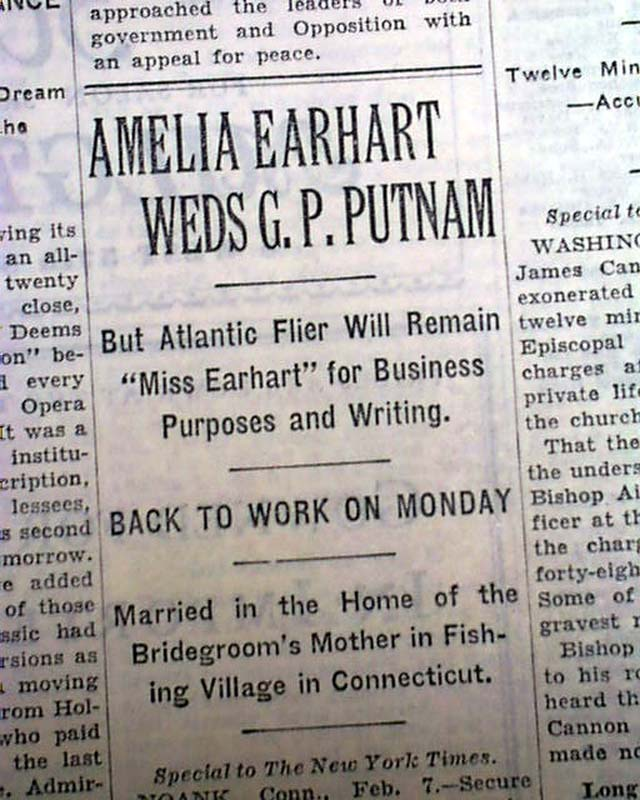8.1931 Amelia Earhart weds George Putnam in Connecticut.