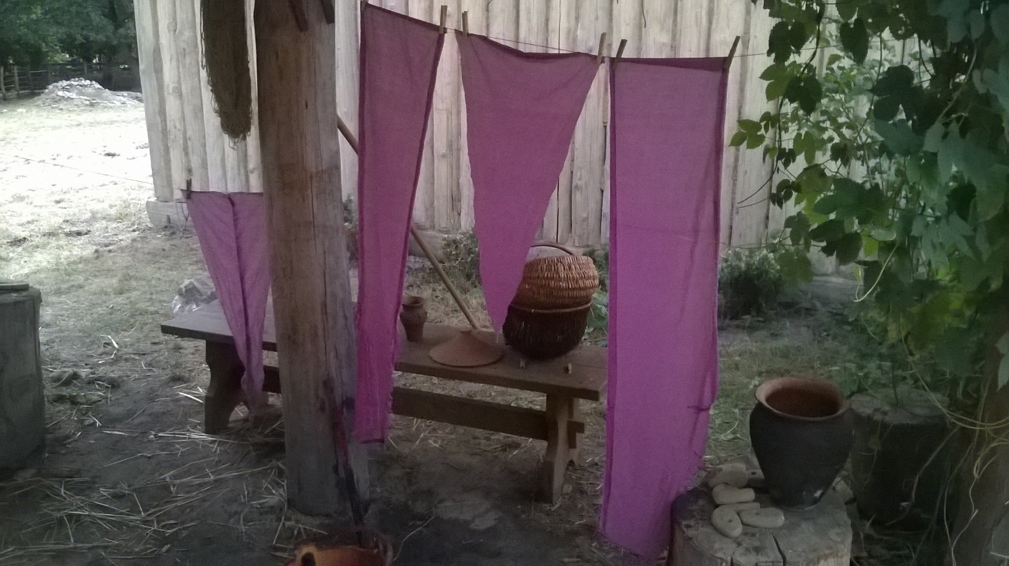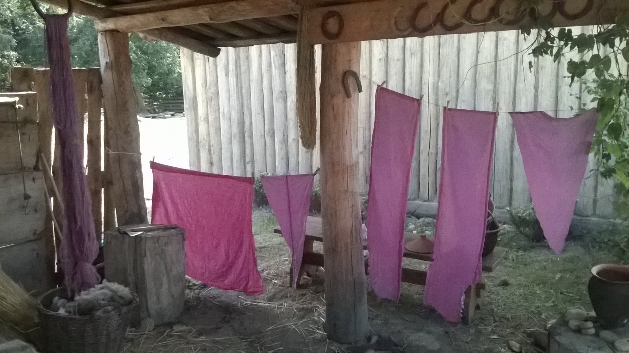 In the end I dyied linen, in the same method that I used with other textiles. It also get nice colour, maybe not so fast as the others, but colour was most intensive, something between purple and pink. But as I wrote at the begenning of this article, I dyied linen last year, and I used it as lining in one of my medieval tunics. After year I can see that colour has become more grey blue than purple. It is nothing new, most books about dying says that most difficult is to fix the colour on linen.