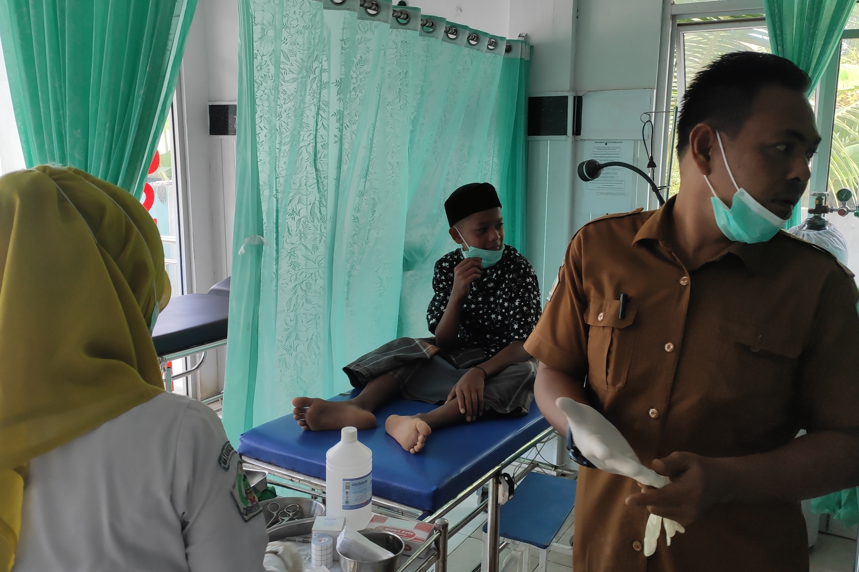 In the picture above the medical team is preparing to provide circumcision services to one of the children, he looks very scared, we continue to explain to him that the circumcision does not cause pain because he is given an anti-pain injection in the form of lidocaine so he does not feel pain when the skin of the tip of the penis is touched incision