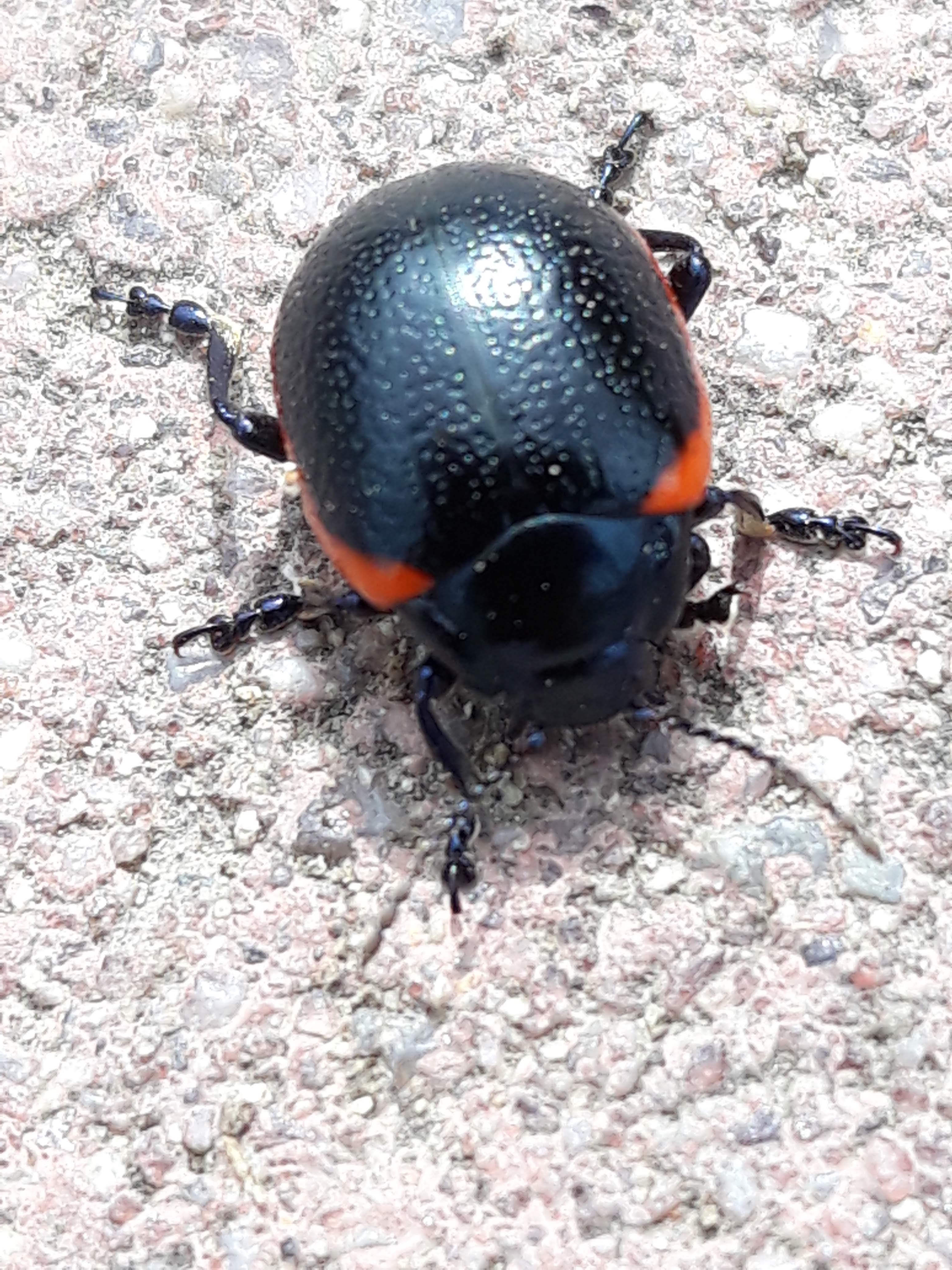 Little beetle crawling on the pavement.