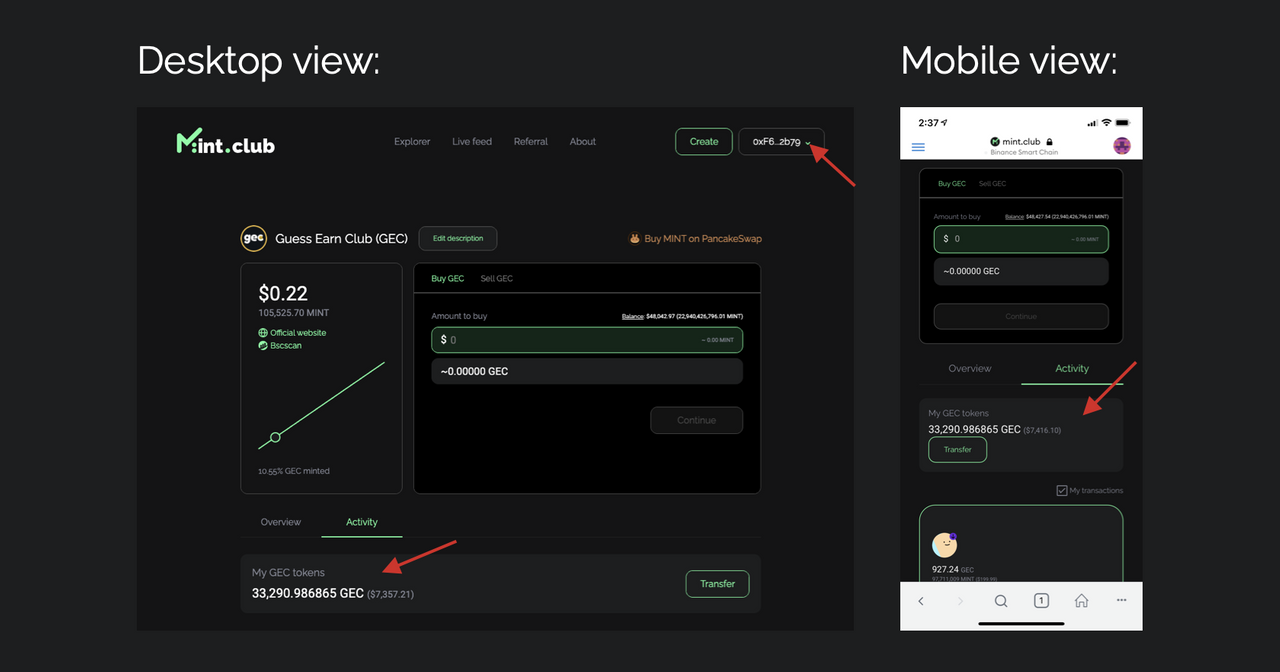 - 민트 클럽의 GEC 토큰 페이지에서 (https://mint.club/GEC/r/9uaz0rc)