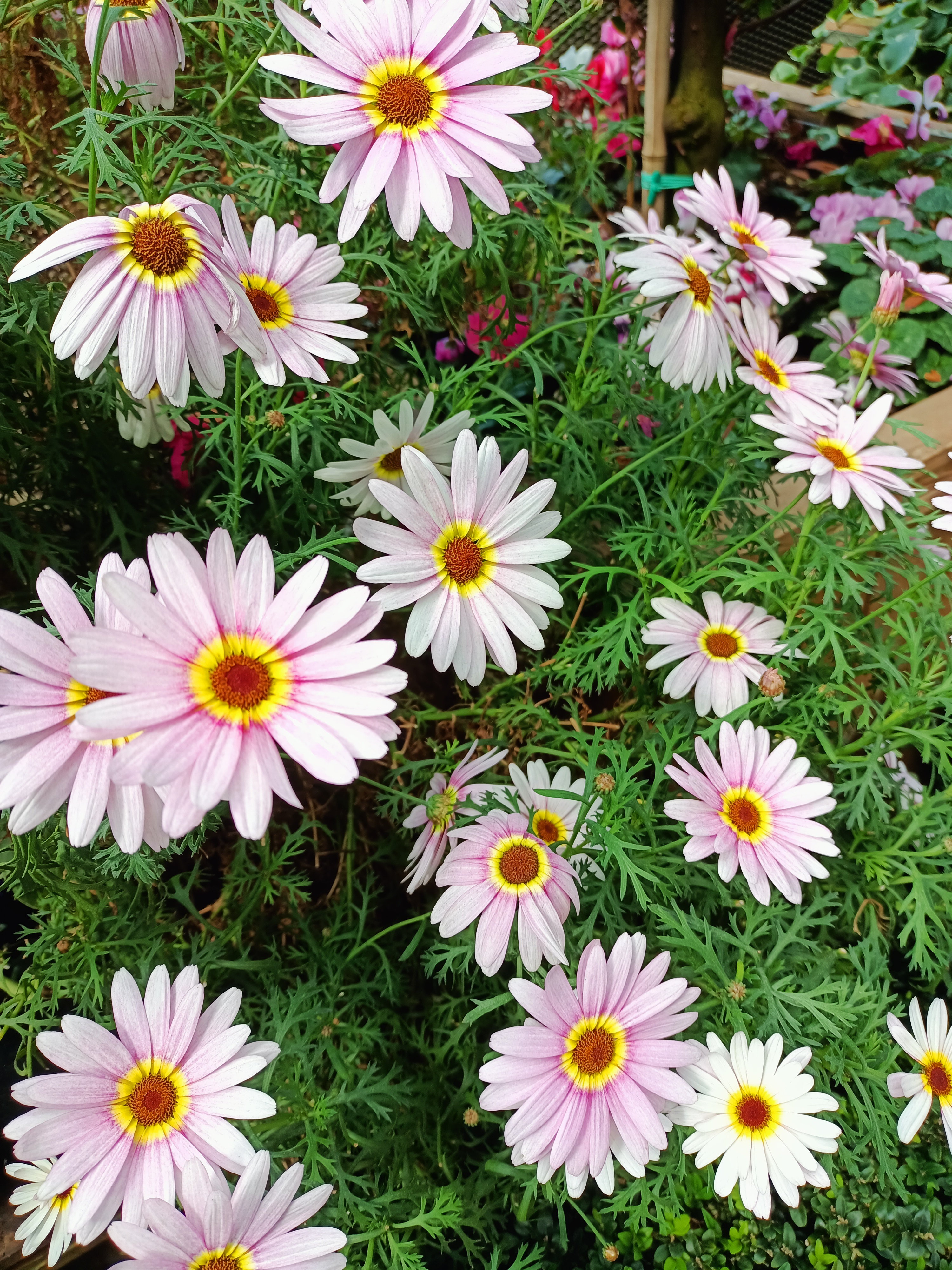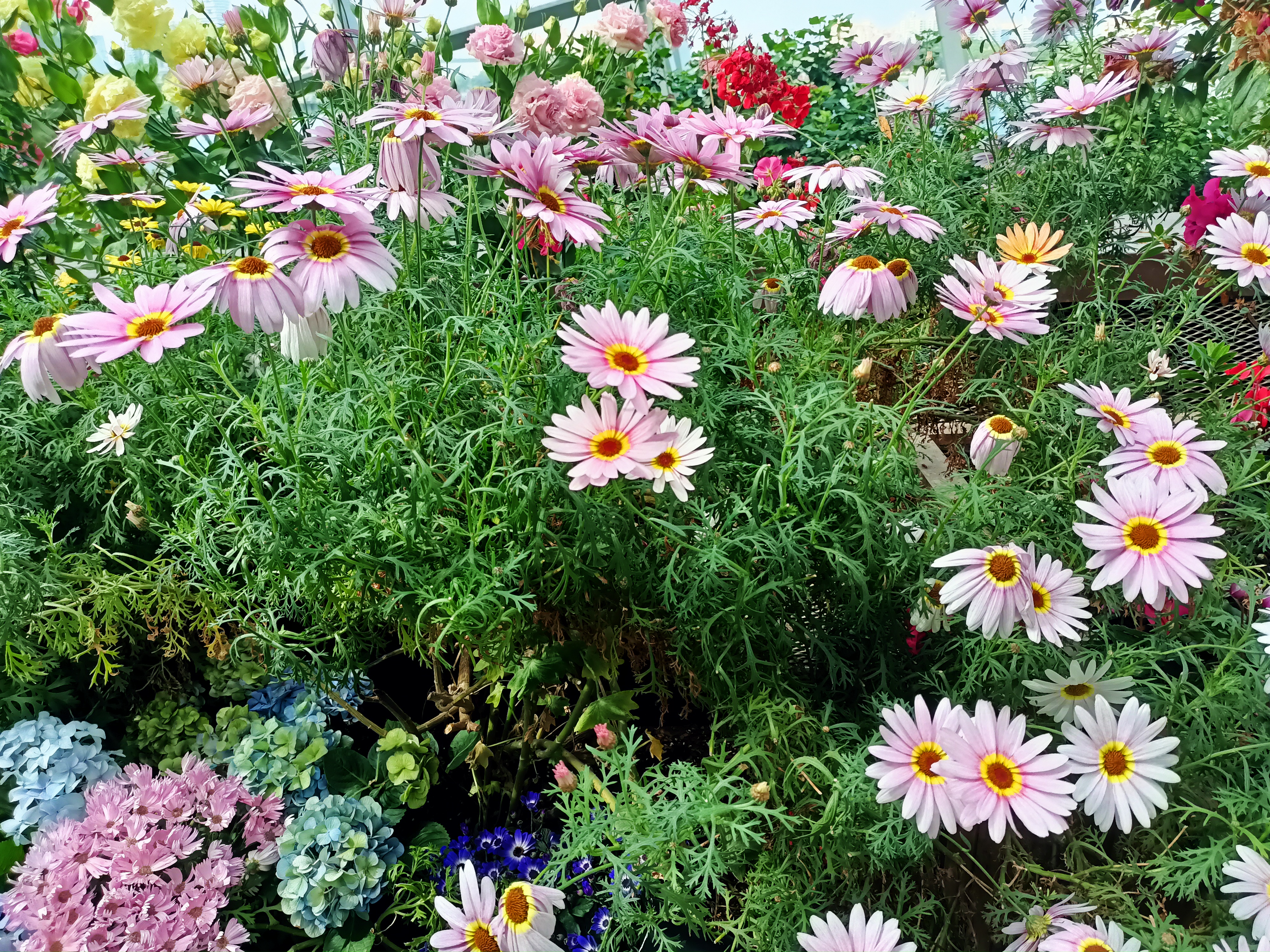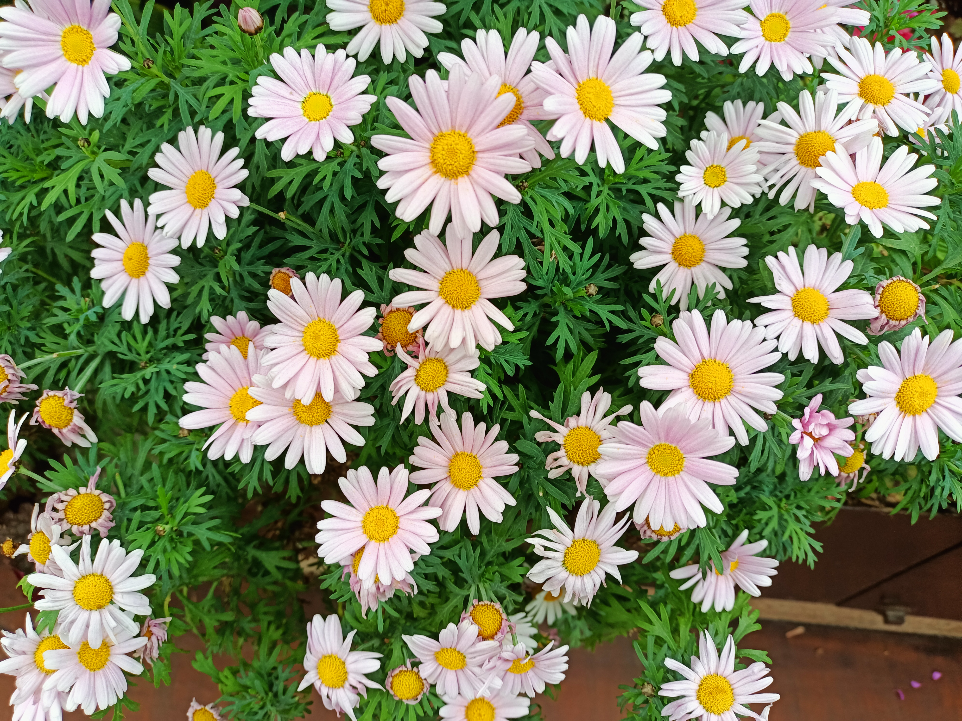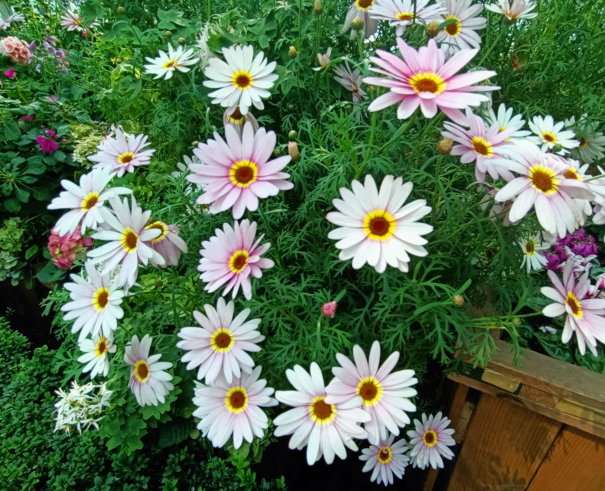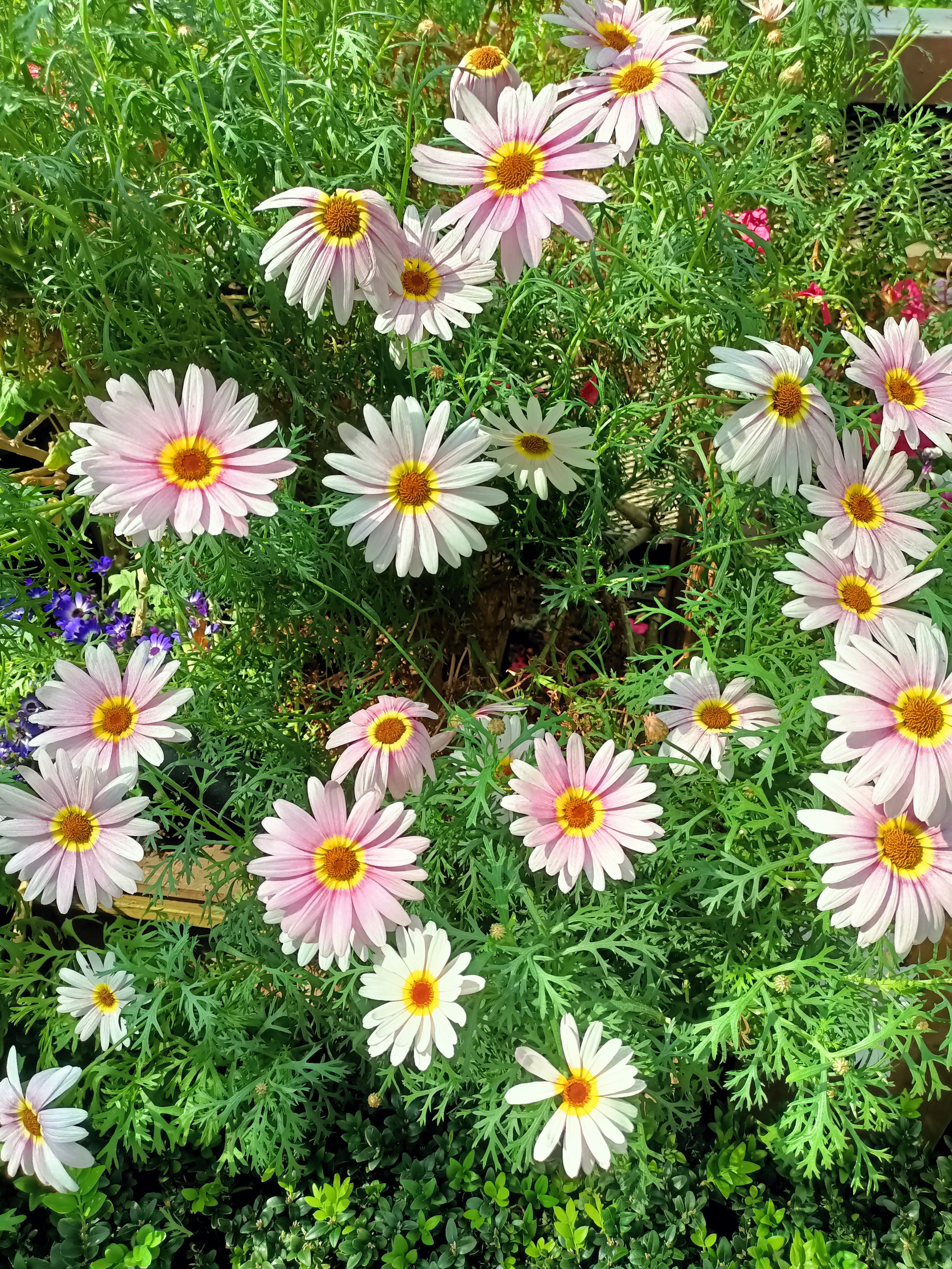 This is the Argyranthemum frutescens, commonly known as Marguerite daisies or Moroccan daisies. They are flowering perennials often grown for their long blooming period.