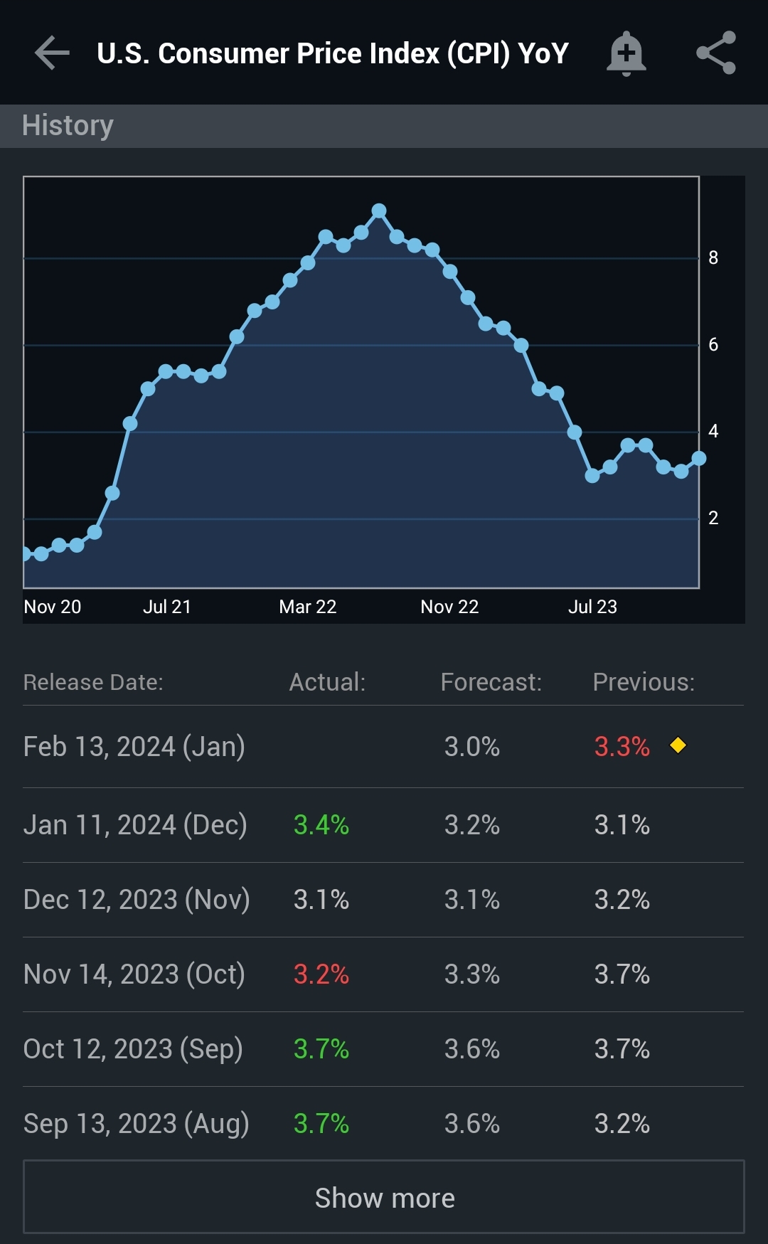 The CPI(Consumer Price Index) will be released on 13th, Feb. The cons(Consensus) is 3.0%. I hope that it is less than the forecast. If it is less than expected, the crypto market will be more bullish.