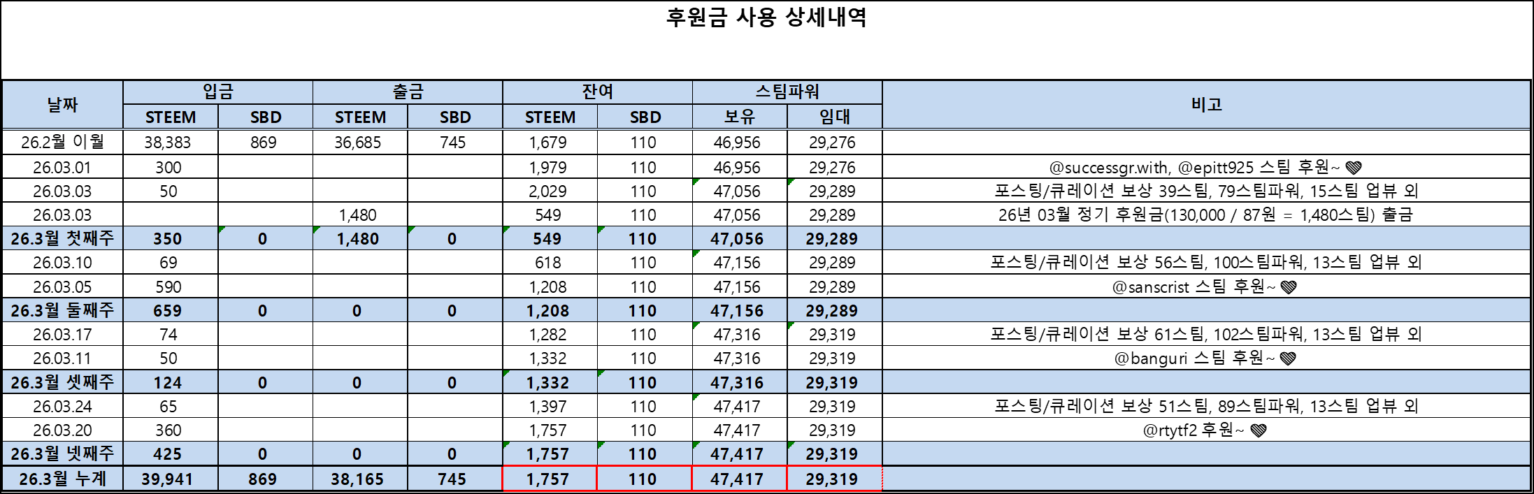 [kissteemkr] 26년 3월 넷째주 재정 보고💕